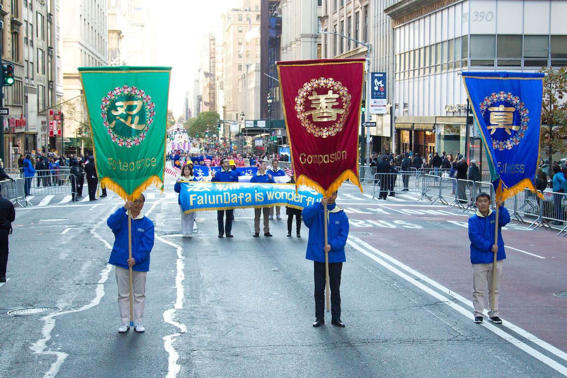天国乐团的指挥周雯雯女士表示,法轮功的天国乐团用军乐队以音乐的形式来庆祝这个节日,同时把法轮大法“真、善、忍”的美好带给曼哈顿人民。“今天我们带来了经典曲目——‘法轮大法好’、‘凯旋’、‘神圣的歌’,另外我们还特别准备了美国国家进行曲《星条旗永不落》(The Stars and Stripes Forever),这个曲子吹起来难度较大,我们排练了很长时间,真心献给纽约老兵节,”周雯雯说:“借此向退伍军人、特别是参加过历次战争的退伍军人表达敬意,同时希望美国强大平安。”