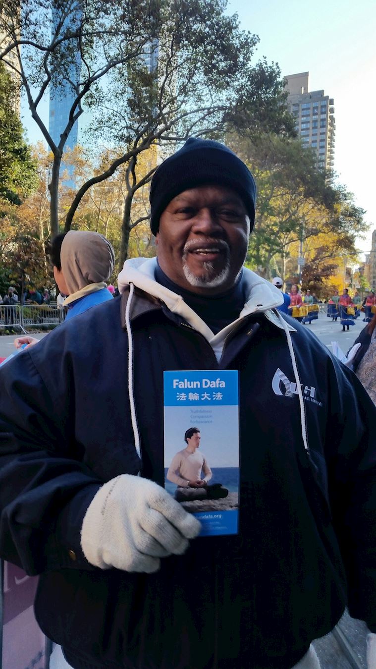 六十九岁的罗恩(Ron)是越战老兵,他与太太和女儿来观看游行。罗恩(Ron)越战期间曾三次受重伤,炸弹曾经在自己附近爆炸。他说:“战争是残忍的,希望人类永远和平。”当他接过法轮功传单,知道法轮功倡导“真、善、忍”理念时,罗恩说:“这个(法轮功)对人类是好的。”
