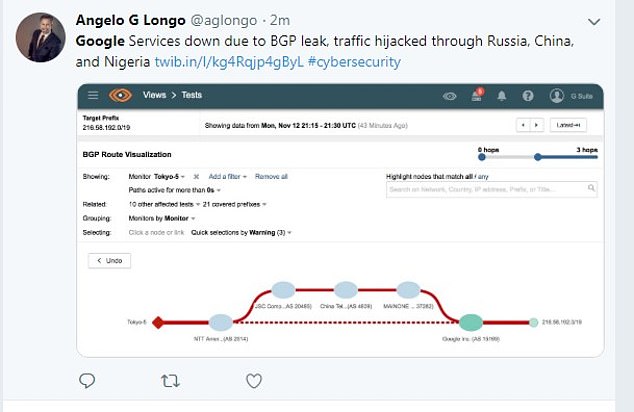 ![]() 图片5:一些用户询问是否“整个互联网”在此期间发生故障,这是由安全专家担心的是公司历史上“有史以来最恶劣的”互联网劫持造成的 |