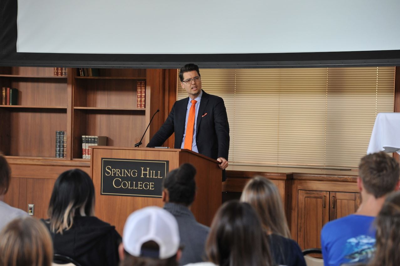 图2:2018年10月26日,犹他大学和亨斯迈癌症研究所的肿瘤内科医生威尔顿·吉尔克里斯(Weldon Gilcrease)博士在伯尔尼(Byrne)纪念堂演讲