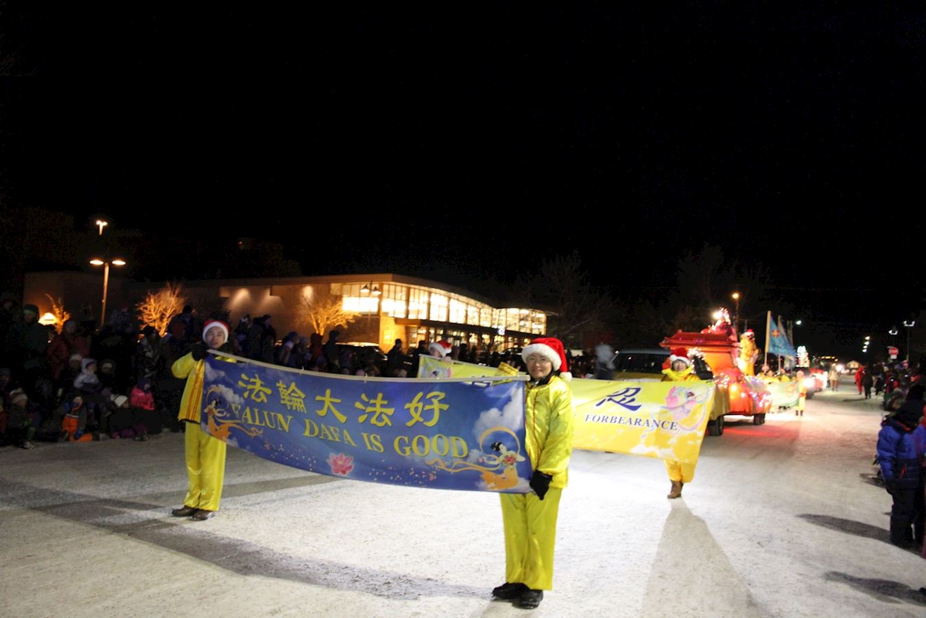 尽管当晚户外冰天雪地,但参加游行的学员都感到非常高兴,他们能感受到观众的喜悦和对法轮大法真相的热切期盼。