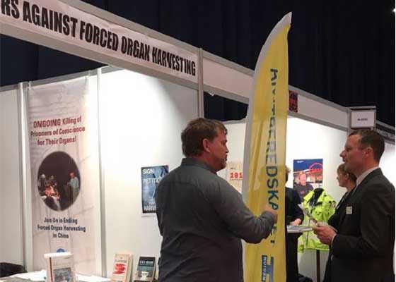 法轮功学员们和“医生反对强制摘取器官组织”再次参加“丹麦医生日”活动,向丹麦医疗界讲述中共系统性的活摘法轮功学员和其他良心犯器官的罪行。