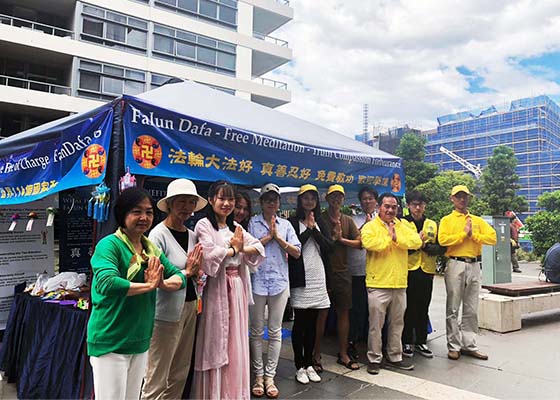 十一月二十四日,位于澳洲悉尼滑铁卢市中心的阿奇博尔德大道上,法轮功团体被邀请参加当地首次举办的居民乡村小集市。