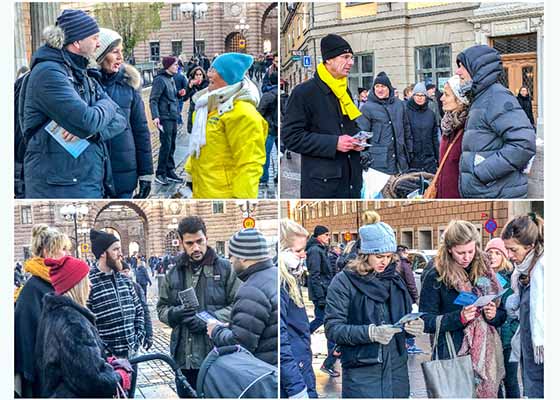 十一月二十四日,瑞典部分法轮功学员冒着雪来到中共驻瑞典大使馆前,打出醒目的横幅,呼吁停止迫害、停止虐杀。