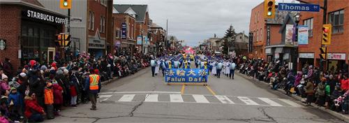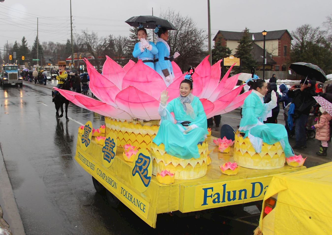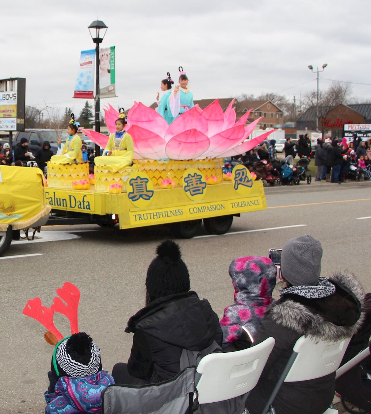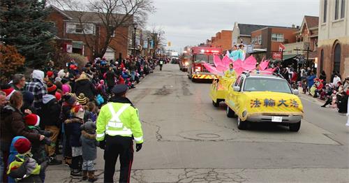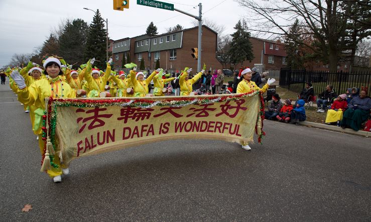 天国乐团参加了二十四日上午十一点大多伦多万锦市(Markham)的圣诞游行;二十五日天国乐团和花车参加了密西沙加市(Mississauga)下午一点的圣诞游行。天国乐团参加游行的这两个城市都是华人聚居的地方,很多华人看到法轮功队伍都很兴奋和激动,他们感谢法轮功学员的到来。