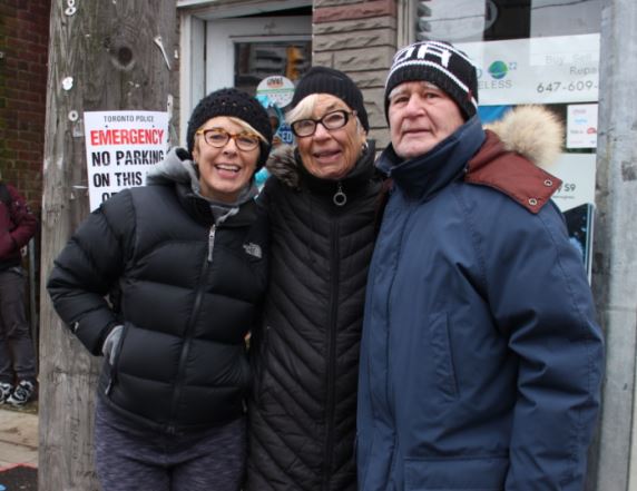 一家三口在路边观看多伦多游行的西人观众吉姆先生(Jim)一家人,看到功法演示,老俩口一起跟着学习第三套功法,太太说:“我知道法轮大法,我买了教功的碟,但是中文的,我没看懂。今天在游行中又看到他们,我觉得回家一定要再去看一次。我知道你们有集体炼功的地方,但是在市中心,离我住的地方太远了。”当了解到多伦多很多地方都有炼功点,还有教功和英文九天班时,太太欣然表示:“太好了,太好了,我要去参加。你们知道吗?你们一定是上天派来的使者。谢谢你们!”