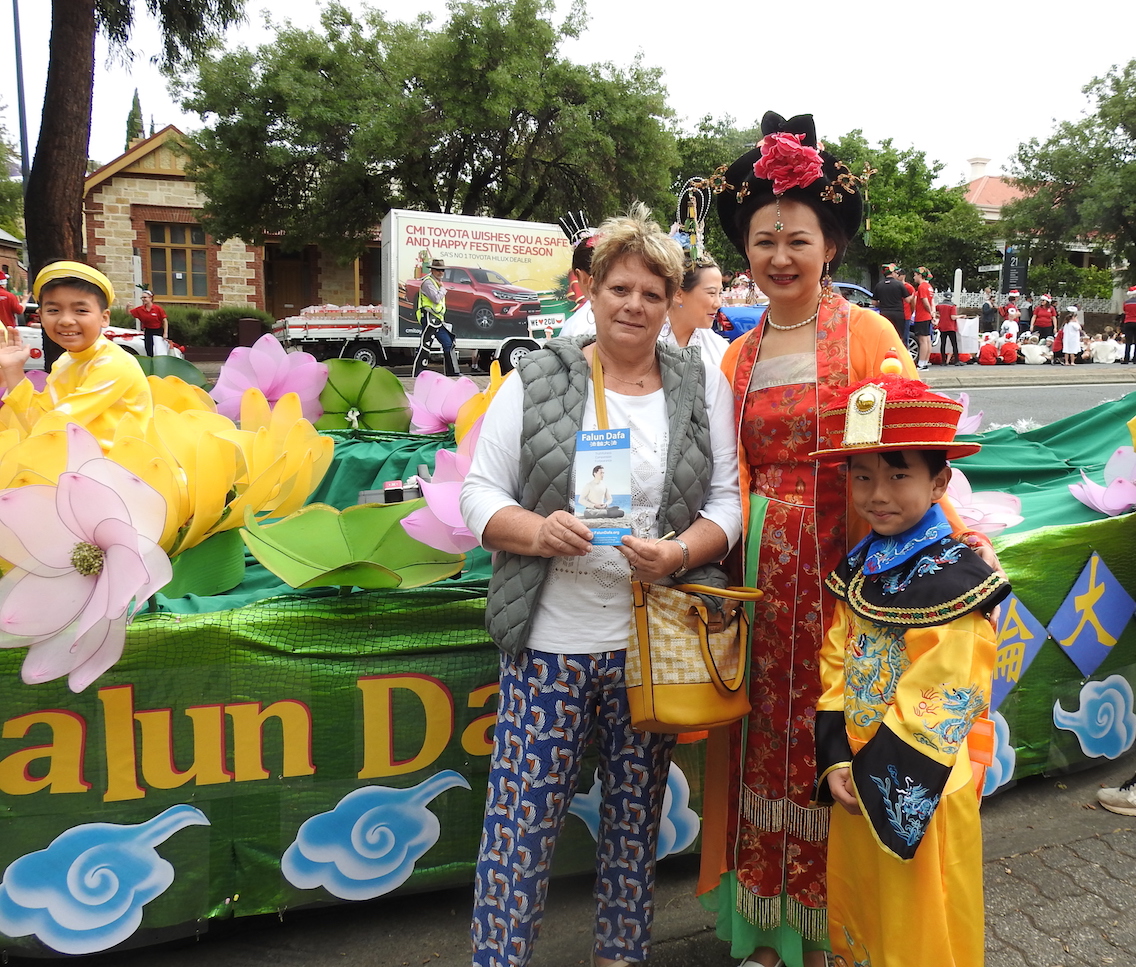 【明慧网二零一八年十一月二十八日】十一月份北美地区庆祝感恩节之际,在南半球的南澳大利亚,一年一度的各地圣诞花车游行陆续登场。阿德莱德法轮大法团体于二零一八年十一月十七日和二十二日(周六)再次参加了阿德莱德港(Port Adelaide)和诺伍德市(Norwood)传统的圣诞花车游行庆祝活动。这是该团体第十四次应邀参加,受到举办单位、民众和政要的欢迎和好评,越来越多的人们想要学炼法轮功,真、善、忍真理日益深入人心。