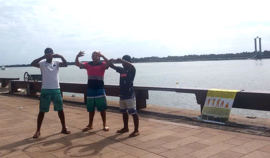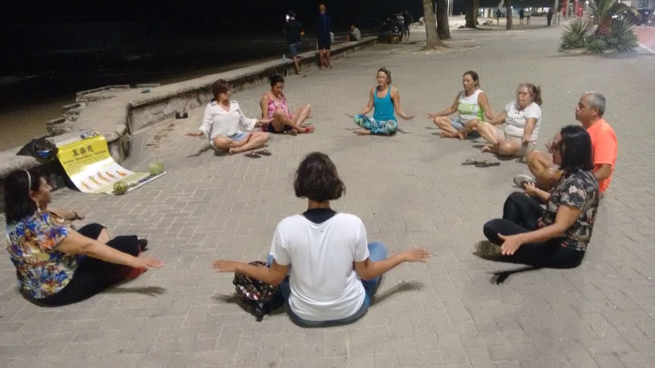 该市的海边车道早五点至八点是步行街,许多人在晨练。学员挂起法轮大法简介,在那里炼功洪法。路过的人要求学炼。玛利亚(Maria )学完第一套功法后说:“我的手臂经常会硬和痛,现在轻松多了,晚上你还来这里教吗?”等学完其它功法,学员承诺晚上还会来教,到晚上她把她的弟弟、弟媳、姐姐都叫来了,大家学习的很认真。她弟弟还把过程录成视频,以便更好学习,还有不少过路年轻人也加入学习。玛利亚炼功后感叹法轮功的奇特,说她的心情和身体都变得轻松,她弟弟表示要能继续在这里炼功就太好了。学员把电话留给玛利亚,告诉她上网看书和教功视频,有问题电话联系,将来可以由她来组织这个炼功点,但必须是免费为大家服务,她高兴地答应了。