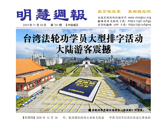 台湾法轮功学员大型排字活动 大陆游客震撼
