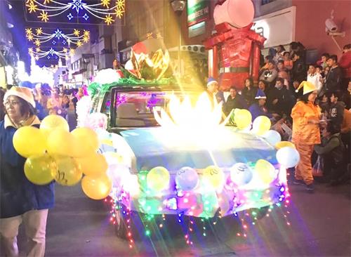 该市一年一度的圣诞节活动被称为“市政厅的梦想”,今年有超过三万墨西哥民众参加了庆祝活动。这是墨西哥法轮功学员首次参加这个游行。参加游行的学员来自墨西哥城、特拉斯卡拉州和普埃布拉州。
