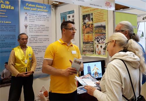 十一月二日至四日,丹麦哥本哈根举办健康博览会,丹麦的法轮功学员再次参展,向民众介绍法轮大法的美好。