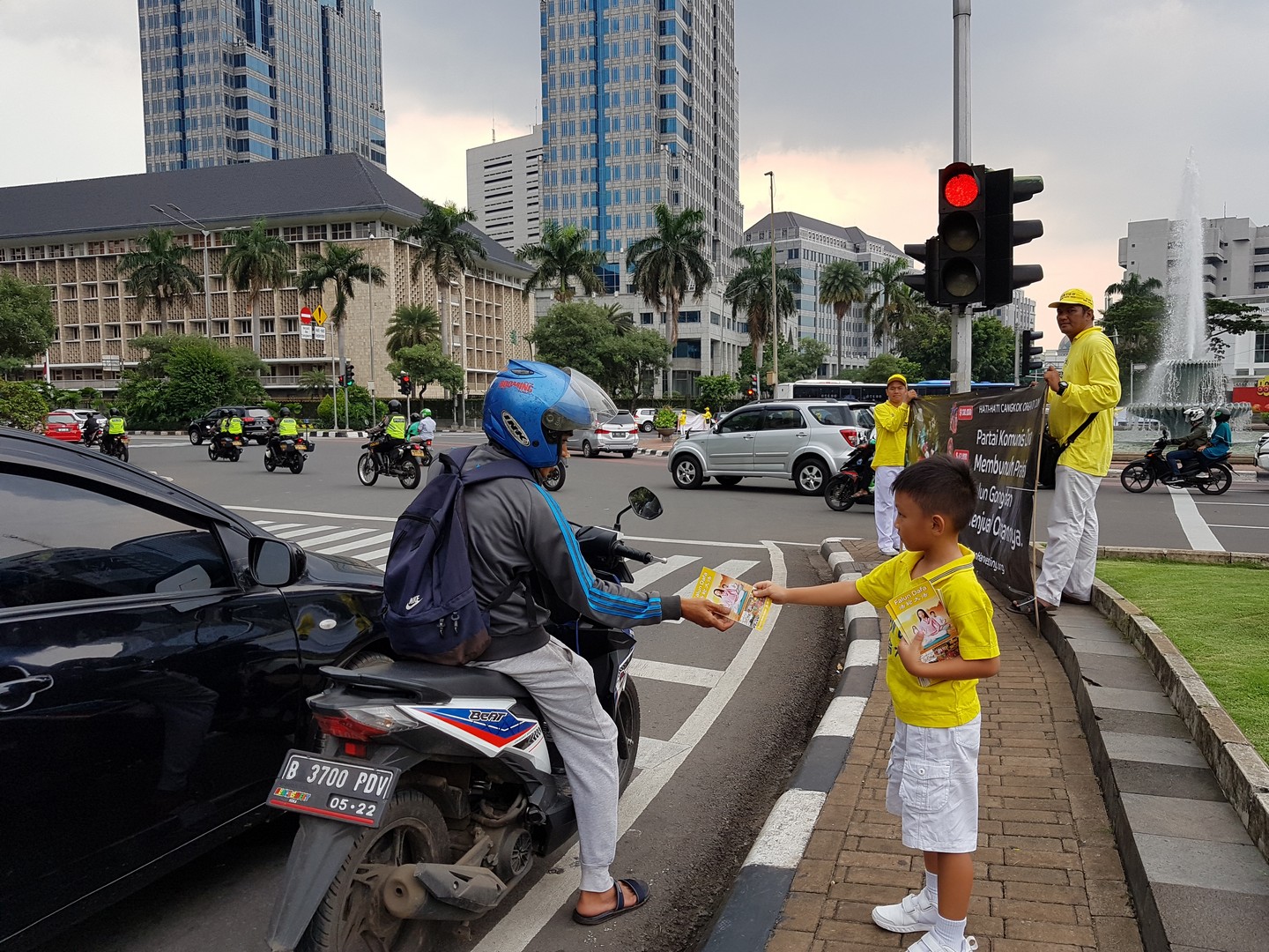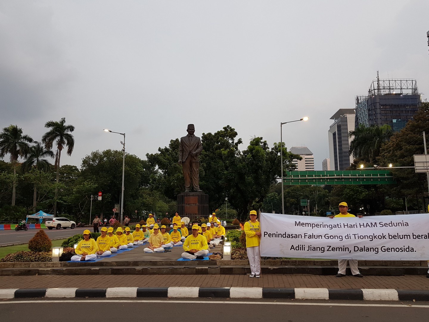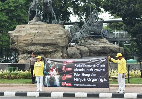 ![]() 图1~2:二零一八年十二月八日,印度尼西亚学员在雅加达中区马雕像圆环民族纪念碑附近的繁华大街交汇处传播真相。 |