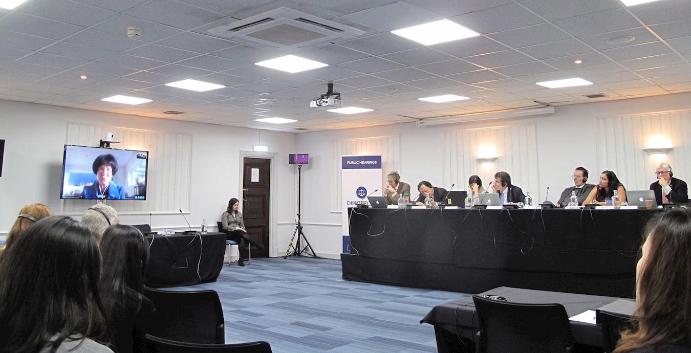 ![]() 图1:二零一八年十二月八日,“独立人民法庭”公开听证会现场。英国法轮功学员杨安妮(Annie Yang)在伦敦向“独立人民法庭”作证 |