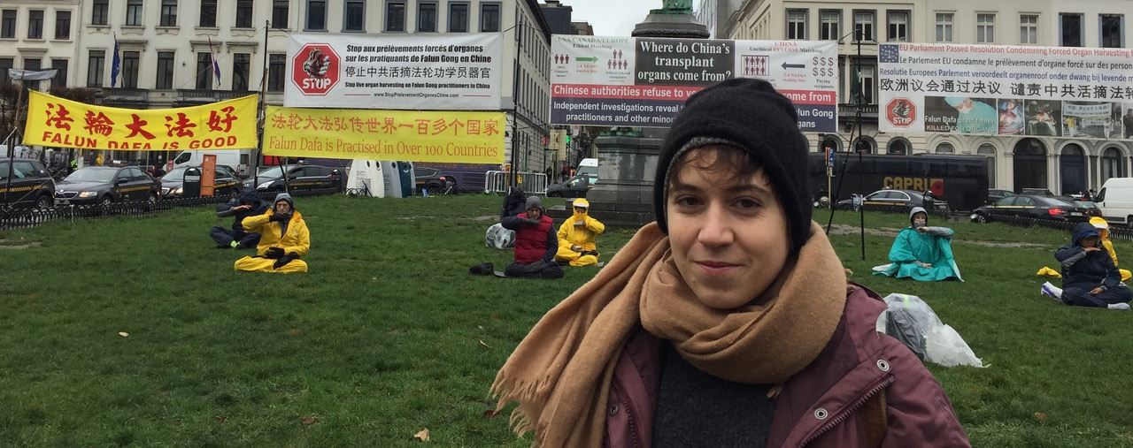 正在上班路上的伊拉亚(Elrler)看到法轮功学员为制止迫害,不为恶劣天气所动,她内心受到很大的震动。她说:在这个政治上起着重要角色的地方,有这件重要的事情(揭露中共活摘器官牟利),那一刻(我)强烈(感到)一种良知(良心的发现)。一些人从这里经过,但对这些事情并不关心。但是现在他们(包括我)在这里花这个时间展现这种良知,我觉得值得而且很重要。让我在上班之前看到、感受到这一切,我感觉很棒。