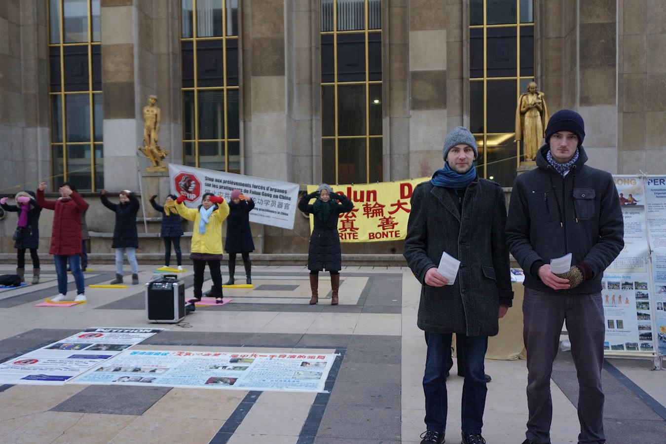 ![]() 图4:Guillaume(左)和Axel是一对表兄弟,他们满怀喜悦之情向游客介绍法轮功 |