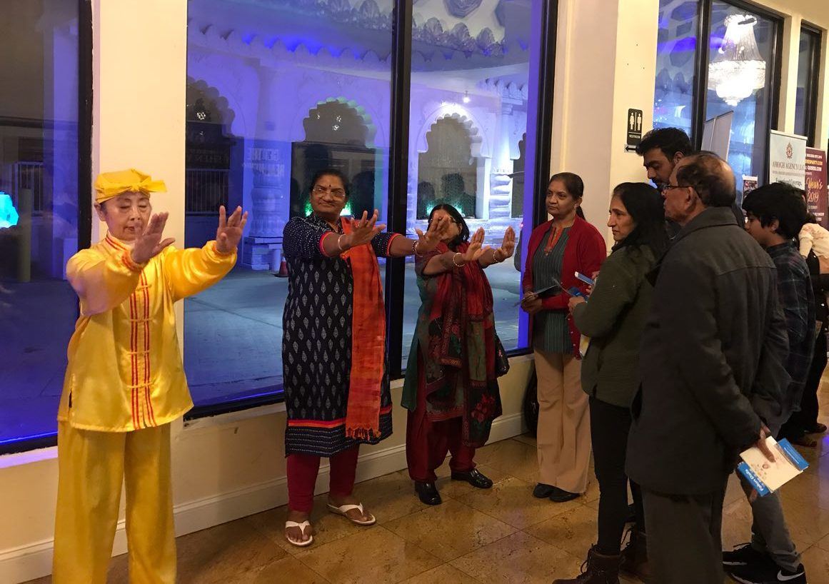 房地产商人Mahesh Swali通过学员讲解,了解了法轮大法是一门古老的东方修炼方法,当他听说法轮大法能够强身健体、增智增慧时,他留下名片,请学员通知他学炼法轮大法的地点,他要参加。