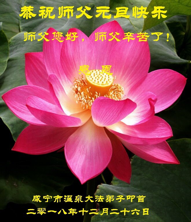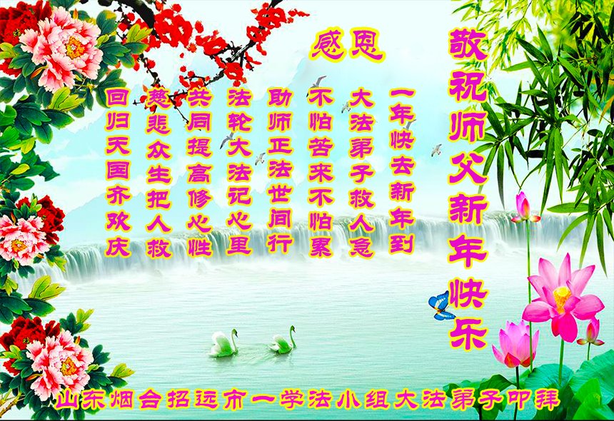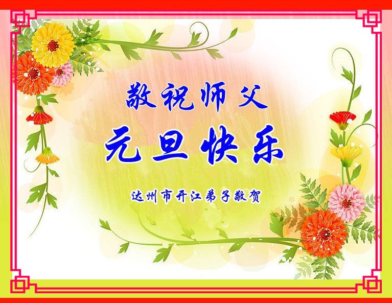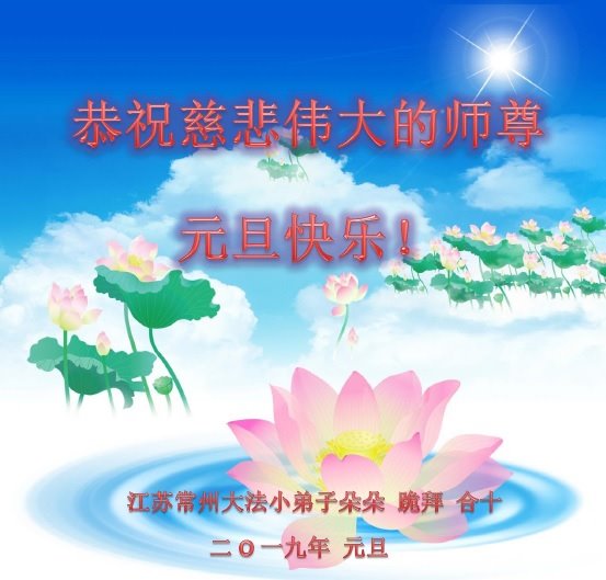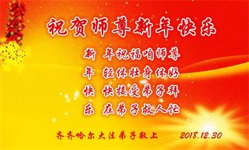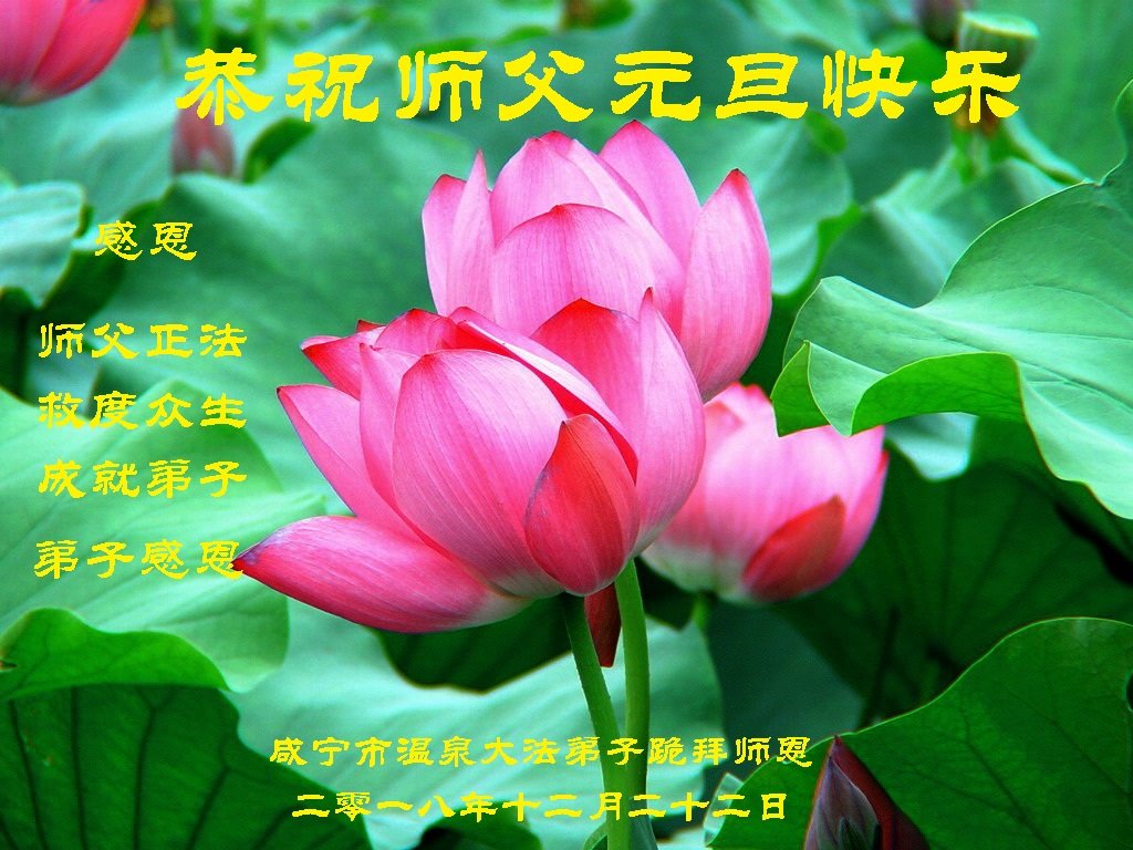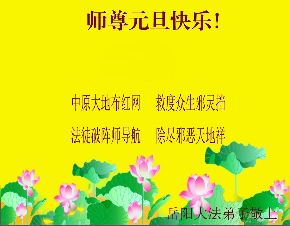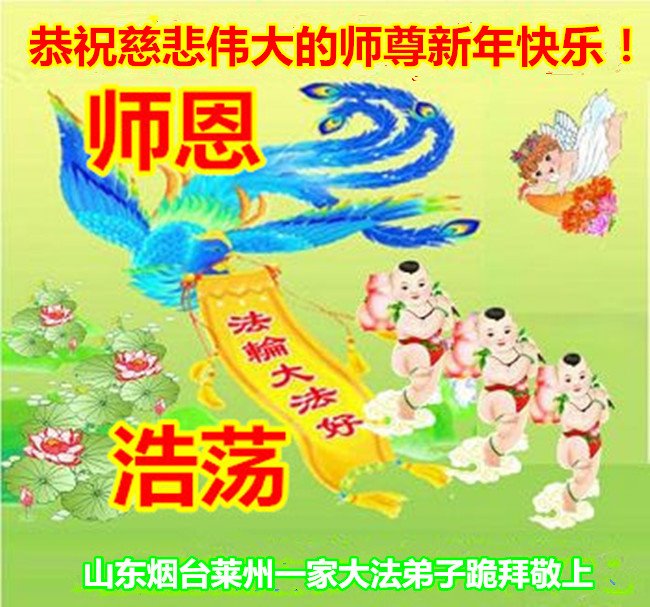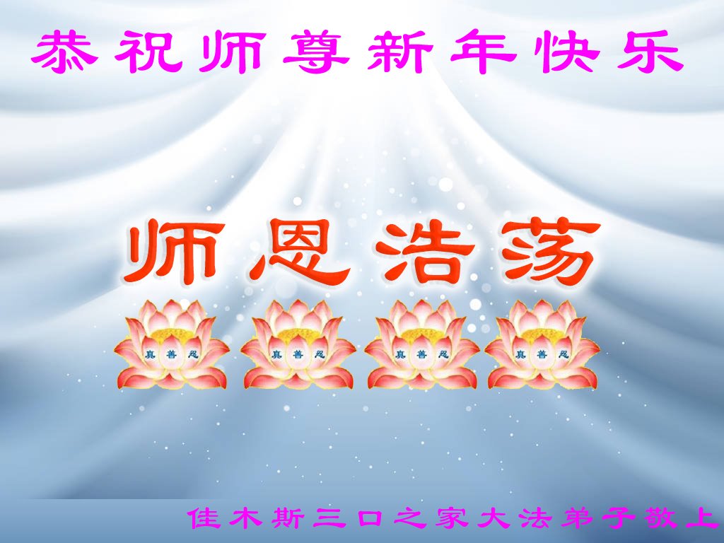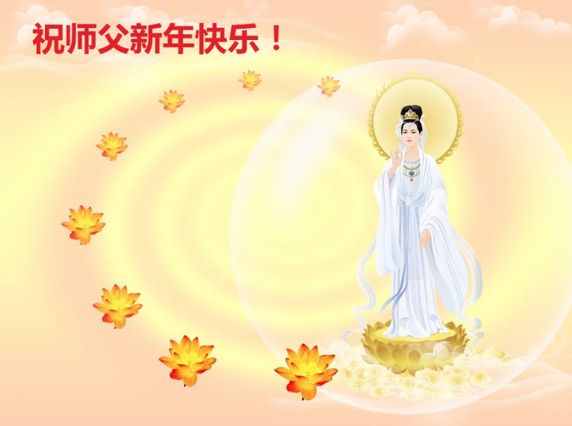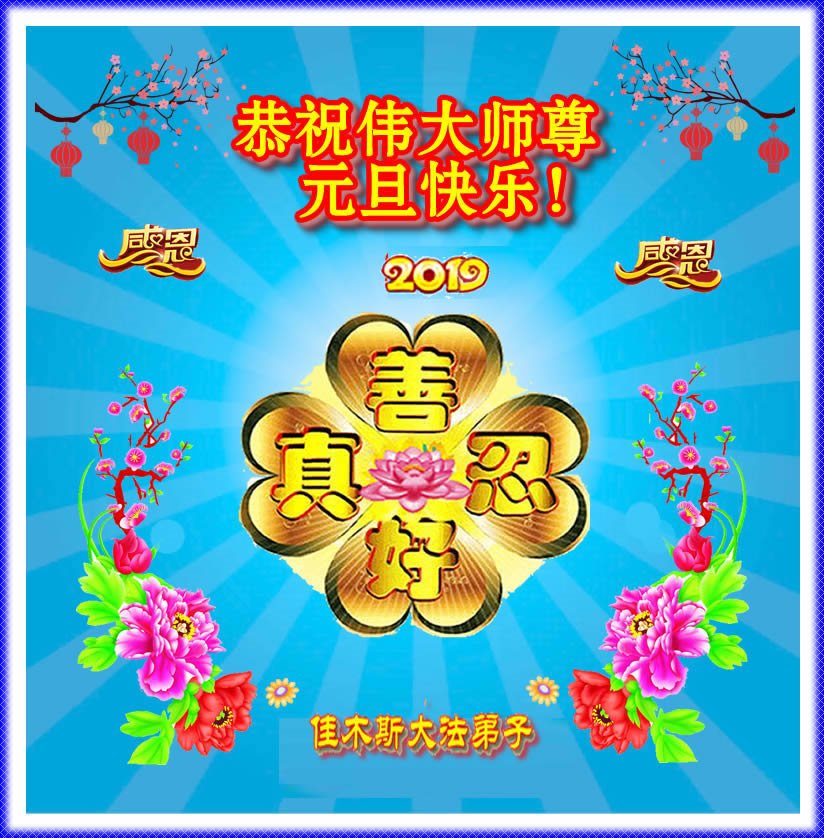 恭祝李大师元旦快乐!新年好!感恩李大师您的慈悲救度!把法轮大法的美好赐给我们!您的弟子告诉我们法轮大法真相,并让我们三退后诚念“法轮大法好!真善忍好!”我们就拥有了健康的身体以及给家人也带来了幸运,做生意和做事都兴旺顺利,告诉家人大法好他们也事事顺。