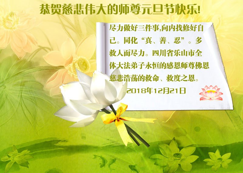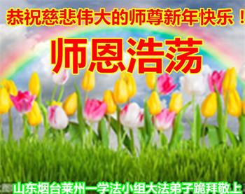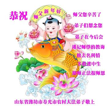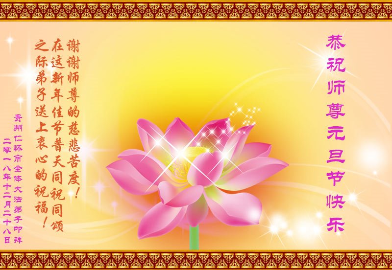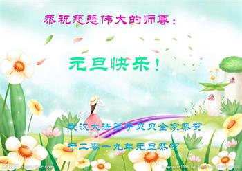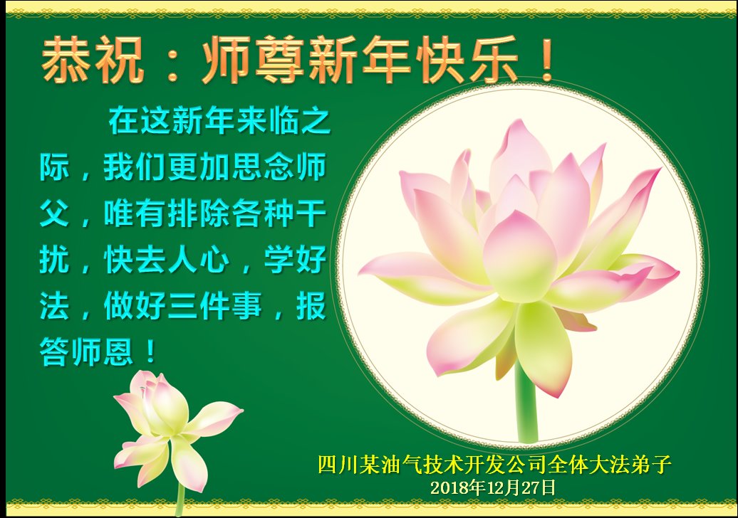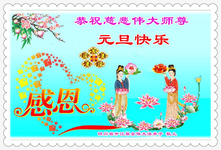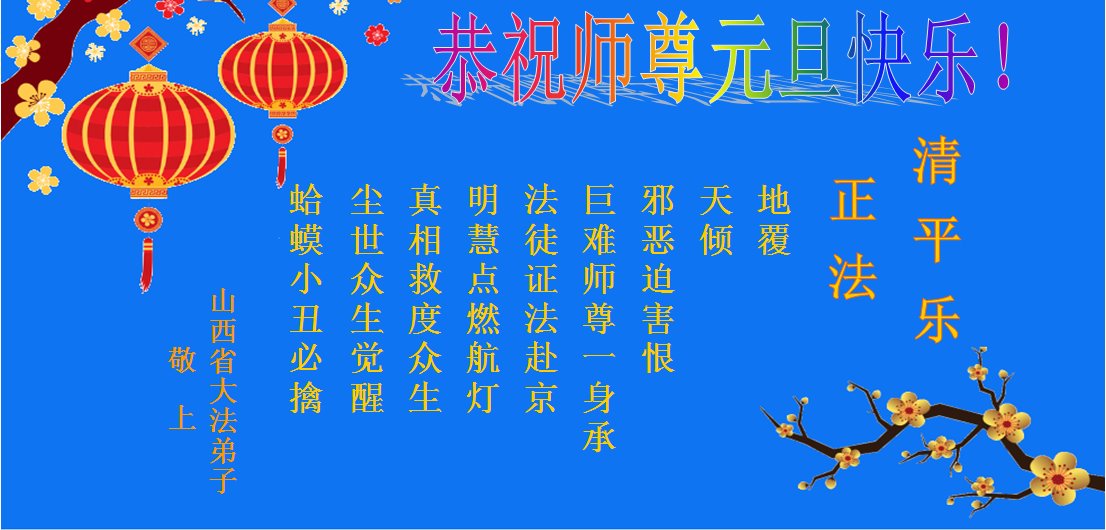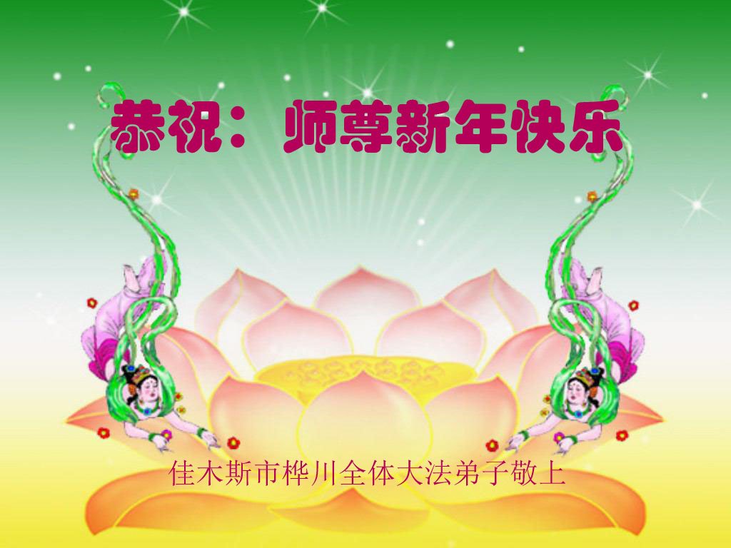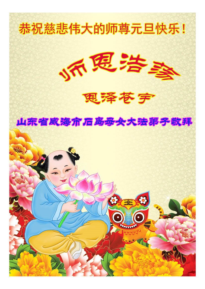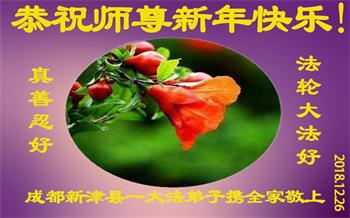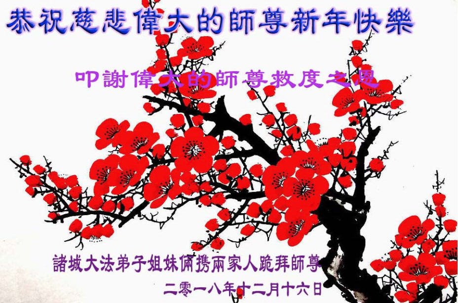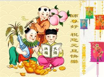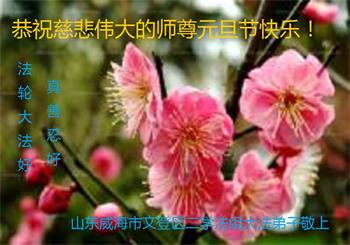 恭祝李大师元旦快乐!新年好!感恩李大师您的慈悲救度!把法轮大法的美好赐给我们!您的弟子告诉我们法轮大法真相,并让我们三退后诚念“法轮大法好!真善忍好!”我们就拥有了健康的身体以及给家人也带来了幸运,做生意和做事都兴旺顺利,告诉家人大法好他们也事事顺。