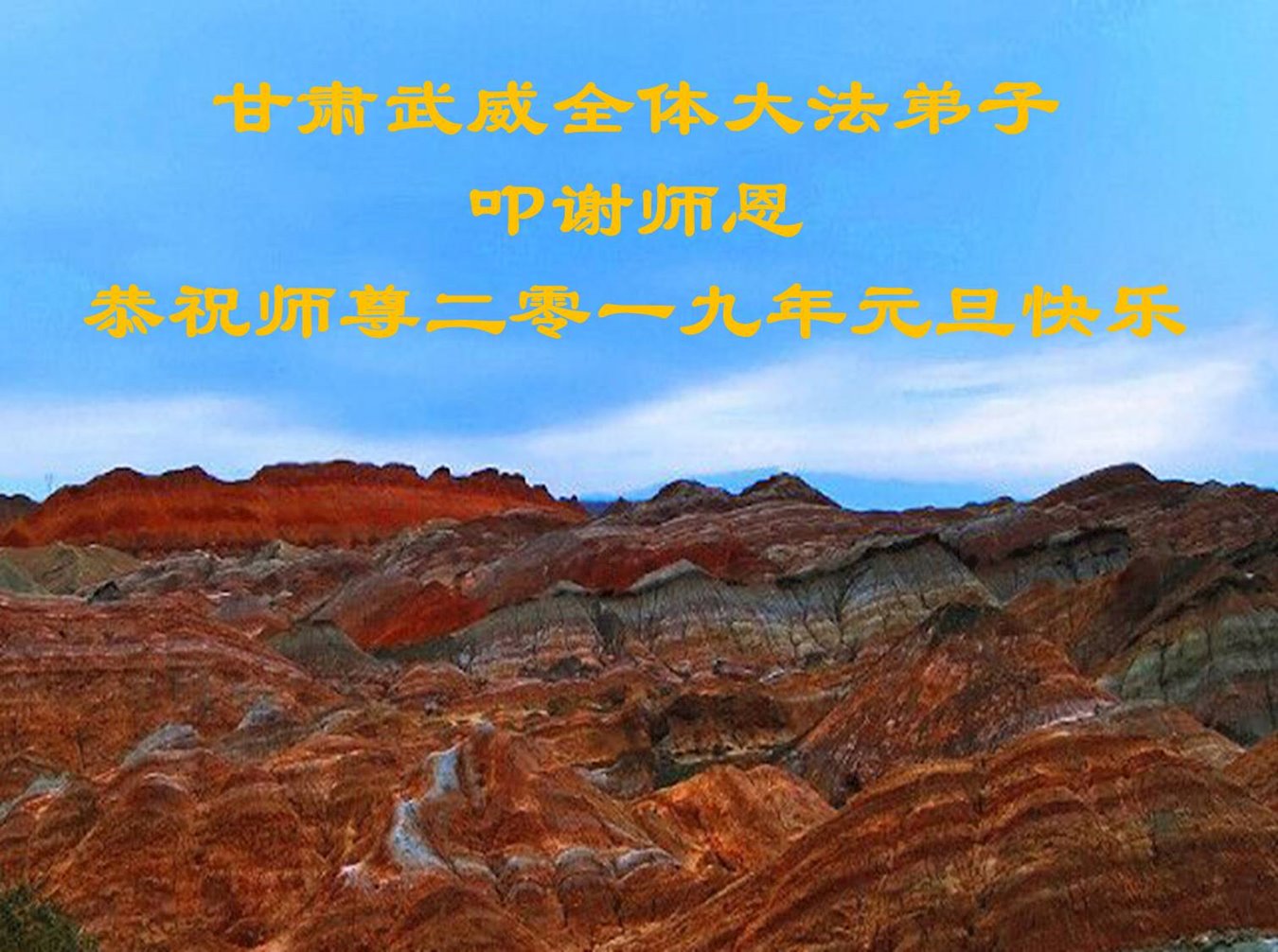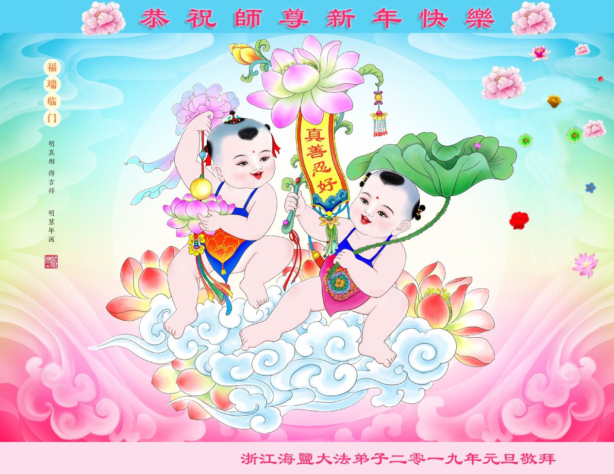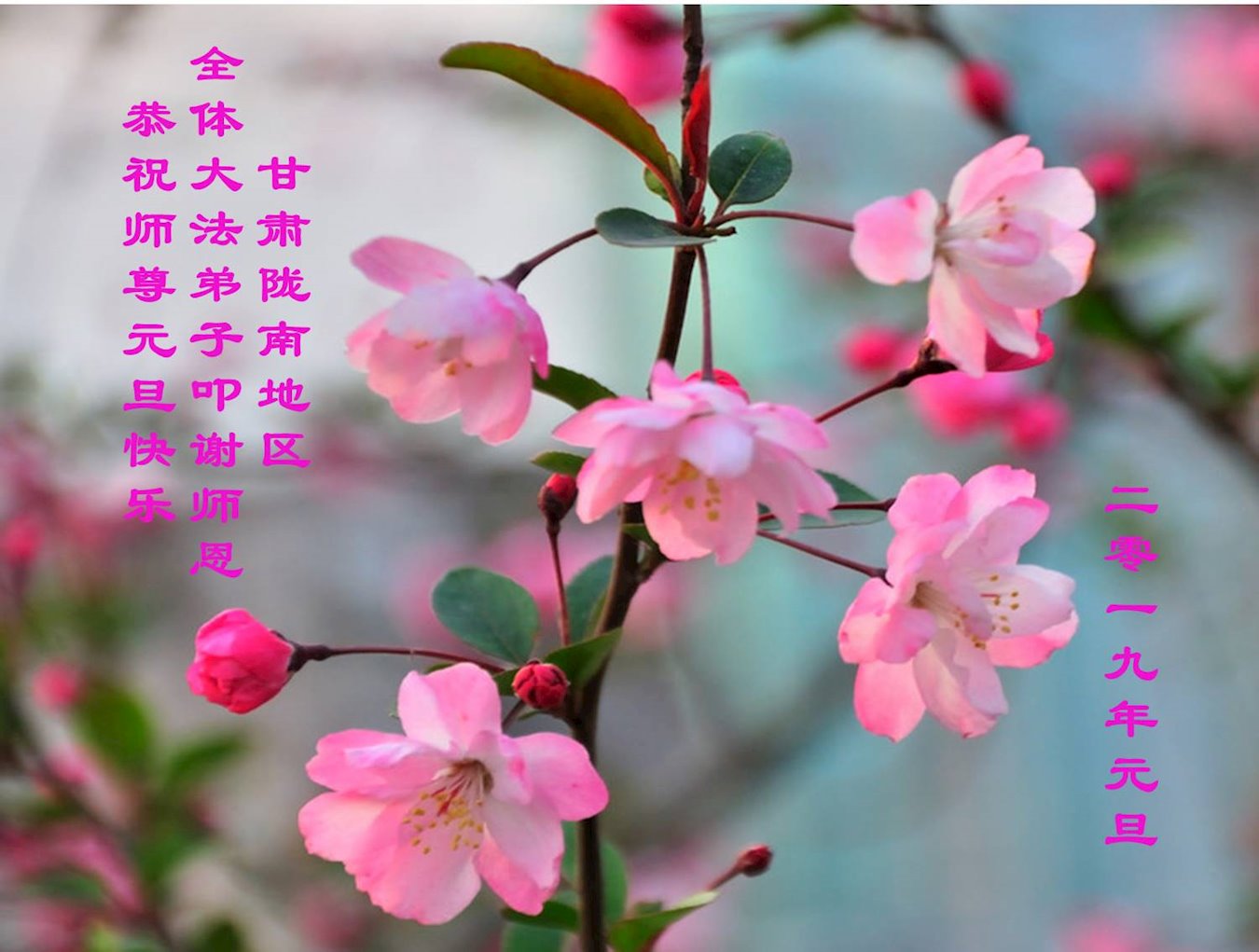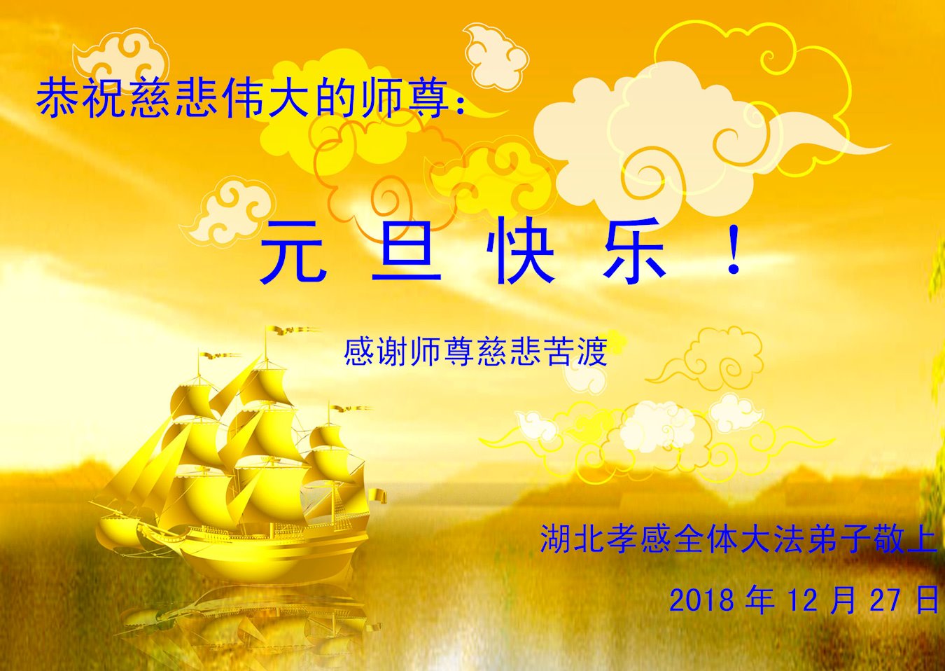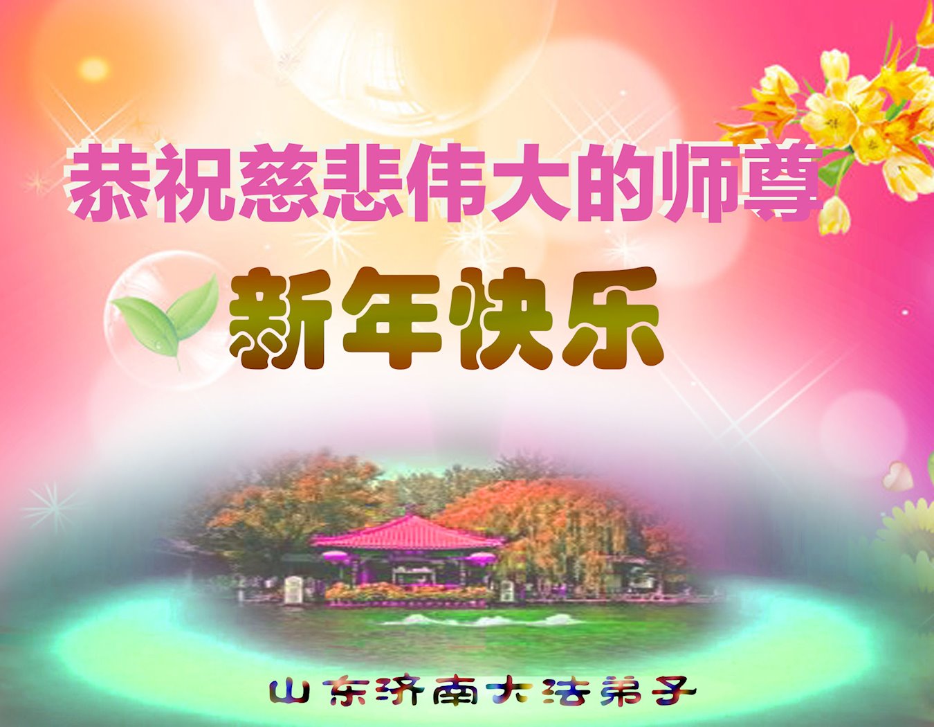 恭祝李大师元旦快乐!新年好!感恩李大师您的慈悲救度!把法轮大法的美好赐给我们!您的弟子告诉我们法轮大法真相,并让我们三退后诚念“法轮大法好!真善忍好!”我们就拥有了健康的身体以及给家人也带来了幸运,做生意和做事都兴旺顺利,告诉家人大法好他们也事事顺。