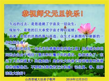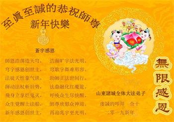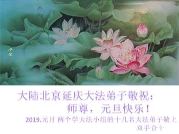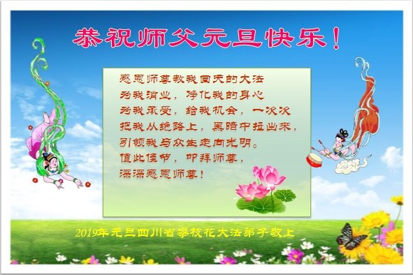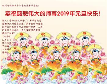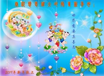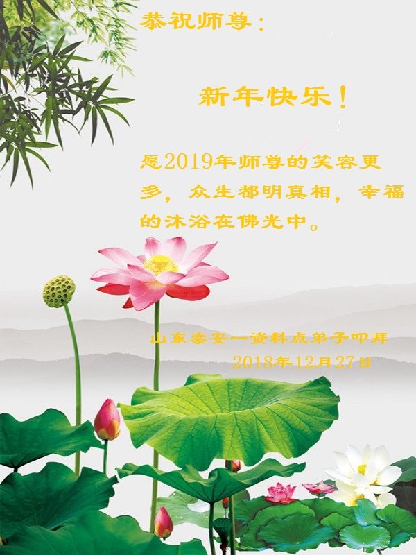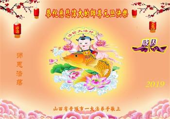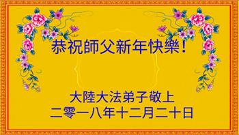 【明慧网二零一八年十二月三十日】(明慧网通讯员综合报道)法轮大法自一九九二年传出,福泽众生,上亿人走上返本归真之路。也有千千万万的世人虽然尚未修炼大法,只因明白了法轮大法好,同样得到了法轮大法的保护。在二零一九年新年来临之际,中国大陆民众给法轮大法创始人李洪志先生发来贺卡、贺词,感谢大法洪恩!