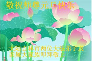 千言万语道不尽师尊对我们的慈悲救度之恩,弟子唯有精進实修,多学法,多去执着心,做好三件事,报答师尊的慈悲救度。弟子代表明真相的家人和父母向慈悲伟大的师尊问好!叩拜师尊