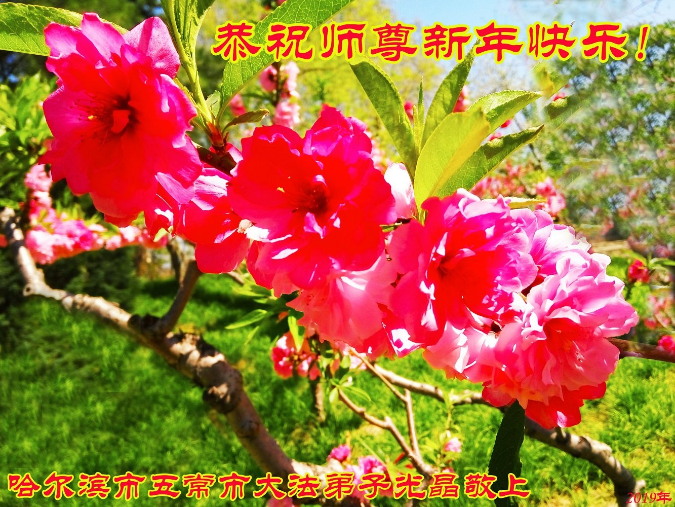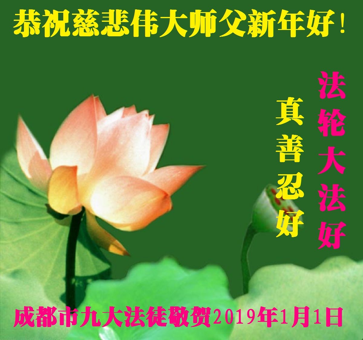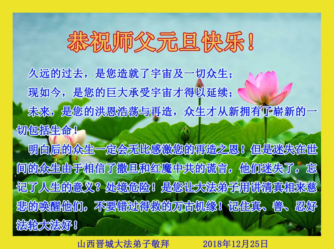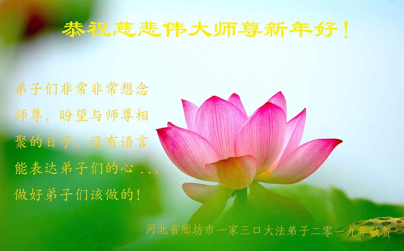 时值2019新年来临之际,我和我全家再一次恭祝大法师父新年好!
