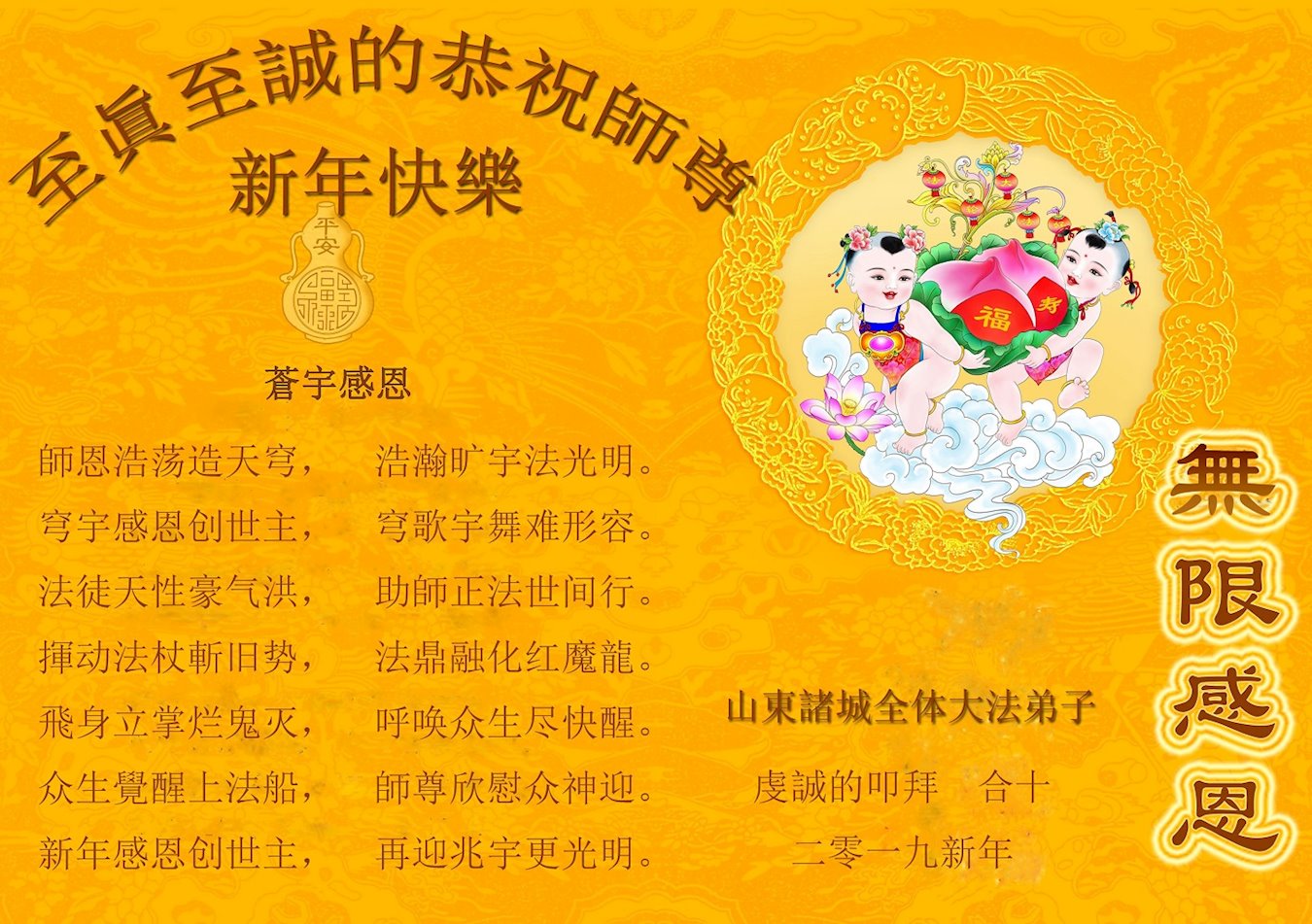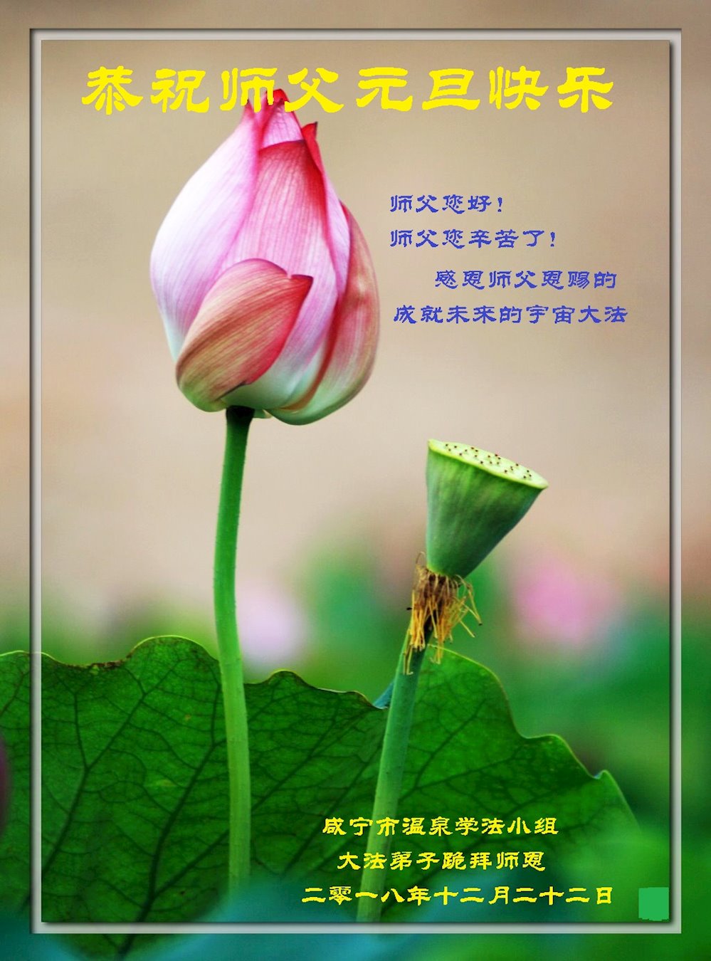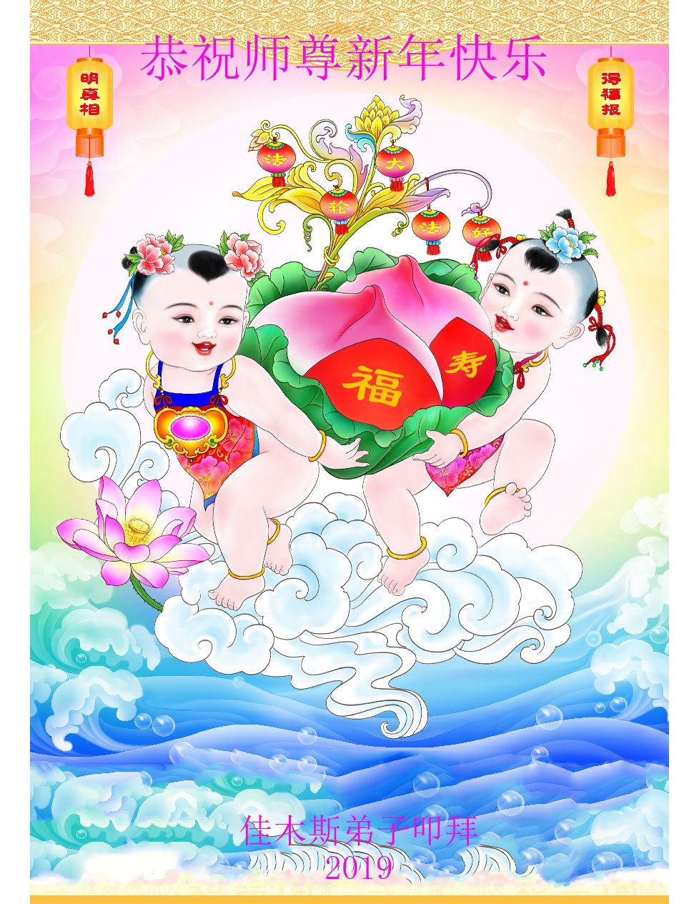 时值2019新年来临之际,我和我全家再一次恭祝大法师父新年好!