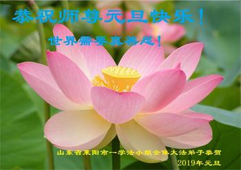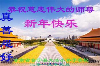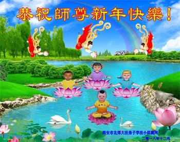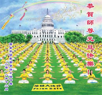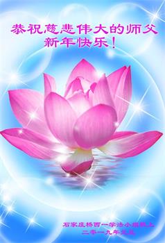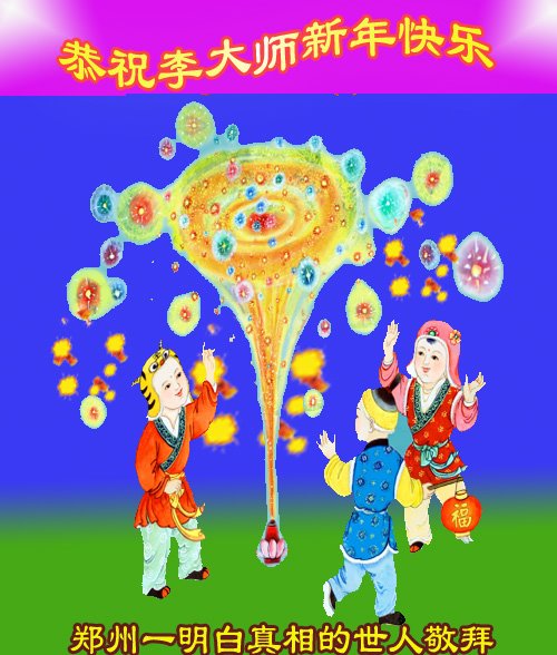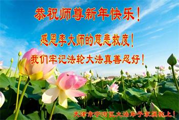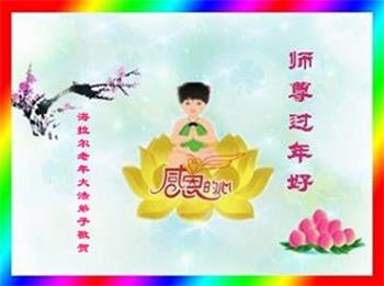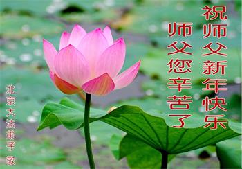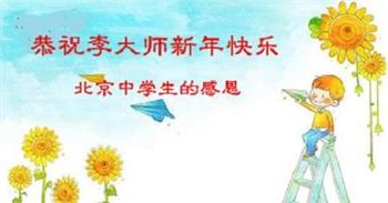 北京一中学生恭祝李大师新年快乐!在贺词中说:“一次偶然的机会,大法弟子给我讲了真相,我退出了少先队,他让我记住:‘法轮大法好、真善忍好’。期末考试时,我心中默念这九个字,神奇的事情发生了,真是如有神助……我对未来充满了信心”。
