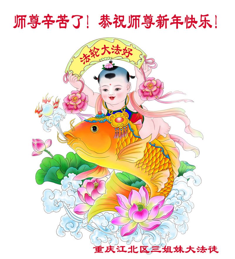 黑龙江大庆大法弟子家知道“法轮大法好、真善忍好”并在大法中受益的女儿恭祝慈悲伟大的李老师新年好!新年快乐!