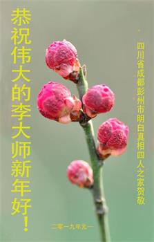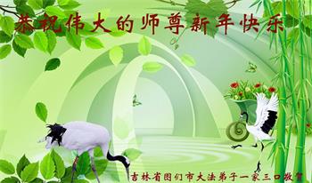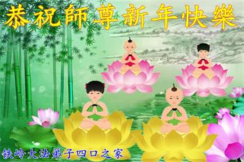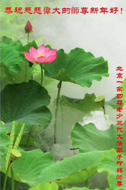 新年来到,我们一家四口人祝大法师父新年幸福快乐!我们永远相信大法,支持大法,支持大法弟子的正义行为,永远不会再受中共邪党的谎言欺骗和毒害。跟着大法师父走才有出路,不与邪党决裂就没有未来。