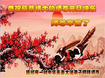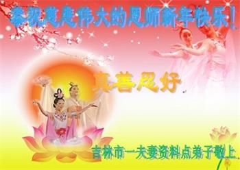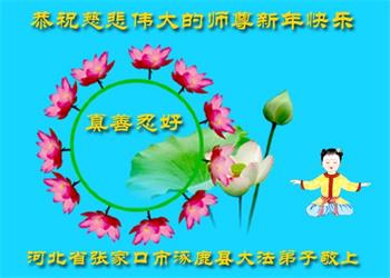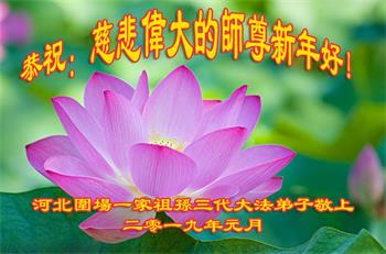 得法前,我的脾气很暴躁,计较个人利益,得理不让人。得法后,我明白了做人的道理,时时处处按照真、善、忍的法理要求自己,凡事都为他人着想,脾气也变好了,周围的人都说我好像换了个人似的。快到新年了,我代表全家大法弟子恭祝师父新年好!”