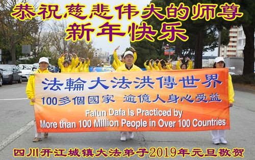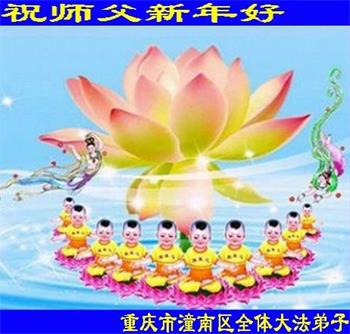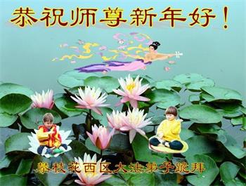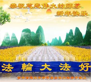 ![]() 图1:澳洲昆士兰法轮功学员恭祝师尊新年好 |