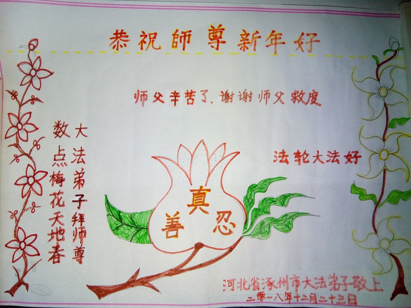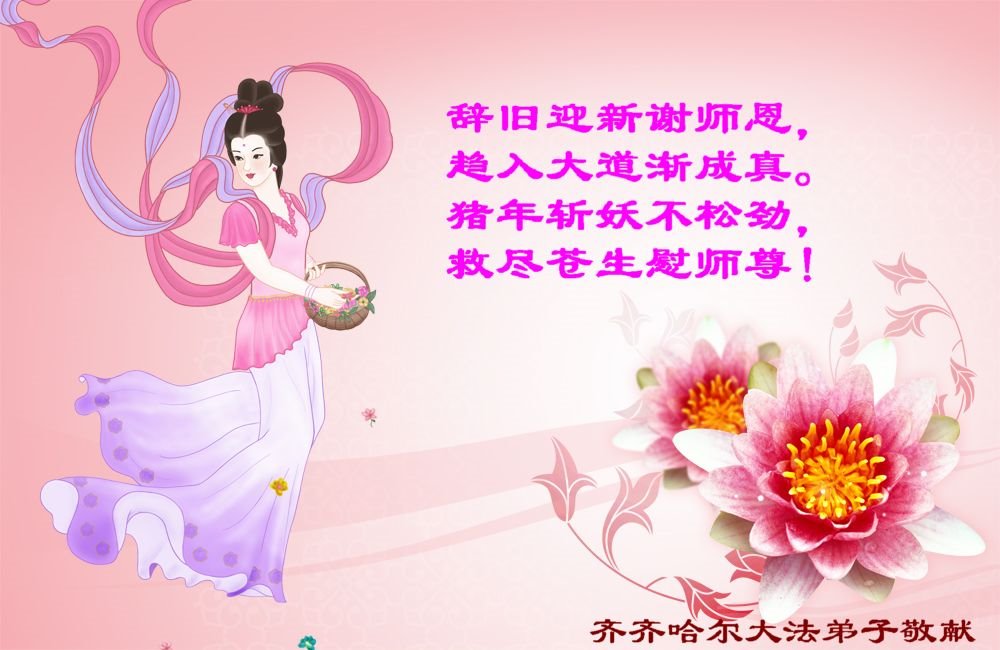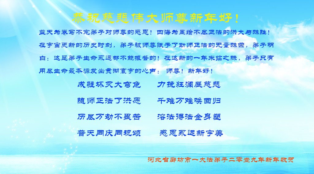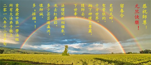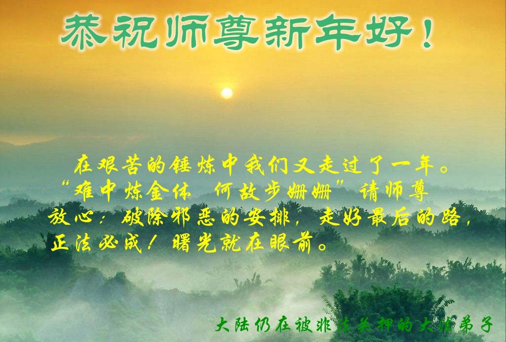 师父的恩德我永远无以报答。能在大法中修炼,我感到无比幸福。新年就要到了。师父,祝您新年好!”