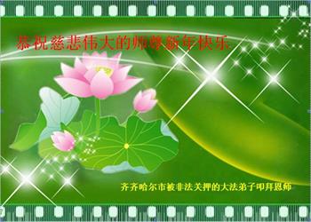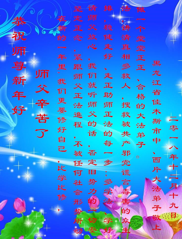 黑龙江大庆明白大法真相、知道“法轮大法好”的一民众恭祝慈悲伟大的李老师新年好!新年快乐!