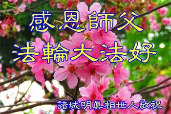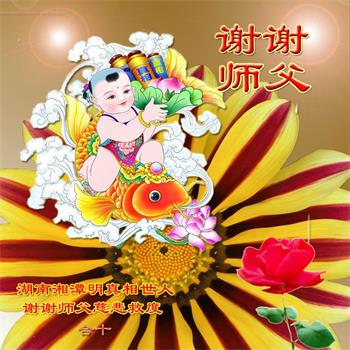 感恩李大师的救度,派天使送给我一张“翻墙”的光盘,使我迷途找到了人生的方向,幸福可以传递,我会把真善忍的温暖告诉我的挚爱亲朋、告诉和我一样迷茫的邻里街坊,盼望李大师早日回国,恩泽众生,我们已经看到了新世纪的曙光!