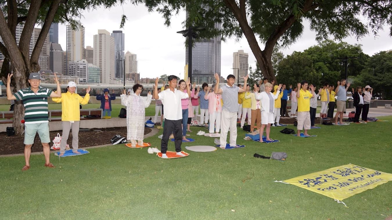 ![]() 图2:澳洲昆士兰法轮功学员集体炼功 |