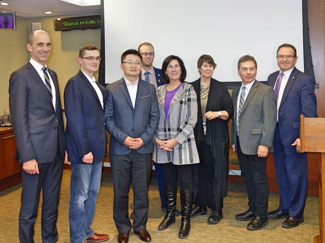![]() 图:二零一八年十二月五日,影展由参议员马里洛斯·麦克菲德兰(Marilou McPhedran)(右三)及国会议员及国会议员谢丽尔·哈德卡斯尔(Cheryl Hardcastle)(右四)和汤姆·凯米克(Tom Kmiec)(左二)主办。观赏电影后,部份议员和该片导演李云翔(左三)合影。 |