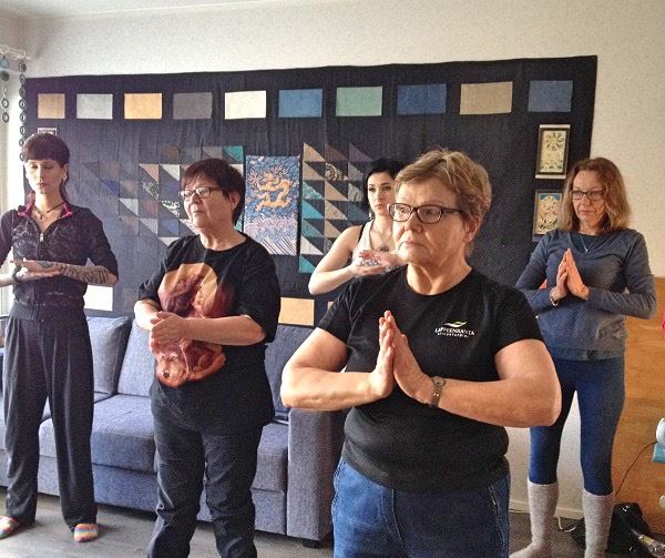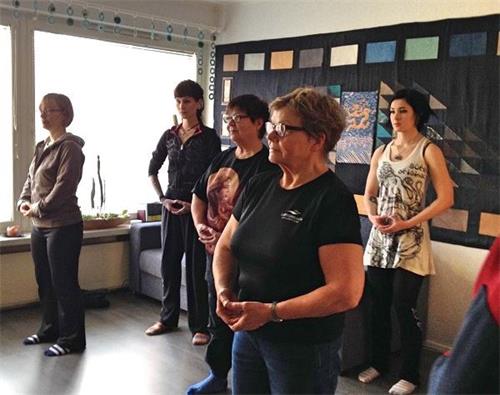 这次法轮功学员应邀在这个展览会上教功,要追溯到十五年前。当地学员从二零零零年开始就在芬兰各地弘法教功,也曾参加过以伊马特拉(Imatra)当地的展销会。当时一位女士在展销会中看到了法轮大法展位,非常感兴趣,但是后来并没有更多去了解。十五年过去了,她在赫尔辛基再次碰到了法轮大法的展位。她就开始上网了解法轮功,并且对功法非常感兴趣。她邀请学员去伊马特拉教功。
