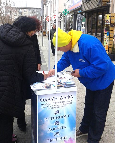 在帕扎尔吉克(Pazardzhik)市的真相点,大约有一百名民众在征签表上签名。当地的民众曾经深受共产党的迫害。他们都非常支持法轮功学员反迫害。