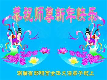 湖南省邵阳市全体大法弟子给师父拜年!师父新年好!弟子们想念您!湖南衡阳珠晖区一学法组全体大法弟子恭祝师尊新年快乐!顶风斗雪传真相,走街串巷救人忙。