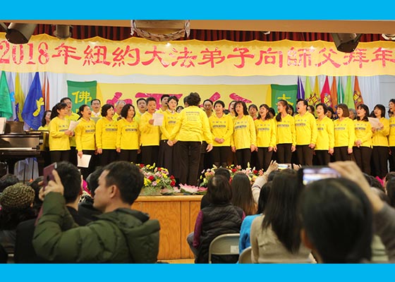 - 纽约法轮功学员向师尊拜年(图)- 中国新年将近,一月二十七日,纽约逾五百不同族裔的法轮功学员齐聚法拉盛,怀着无比感恩的心,给慈悲伟大的师尊拜年,感激师尊的救度之恩。