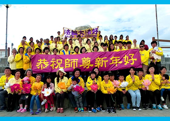 - 台东法轮功学员恭祝师尊新年好(图)- 中国新年来临之际,台东部份法轮功学员利用假日午后齐聚在台东海滨公园,向慈悲伟大的师父拜年。弟子们表示新年要更精進。