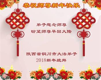- 陕西大法弟子恭祝师尊新年好(18条)- 陕西省铜川市大法弟子恭祝师父新年快乐!弟子想念师尊!盼望师尊早回大陆。