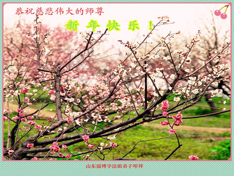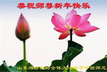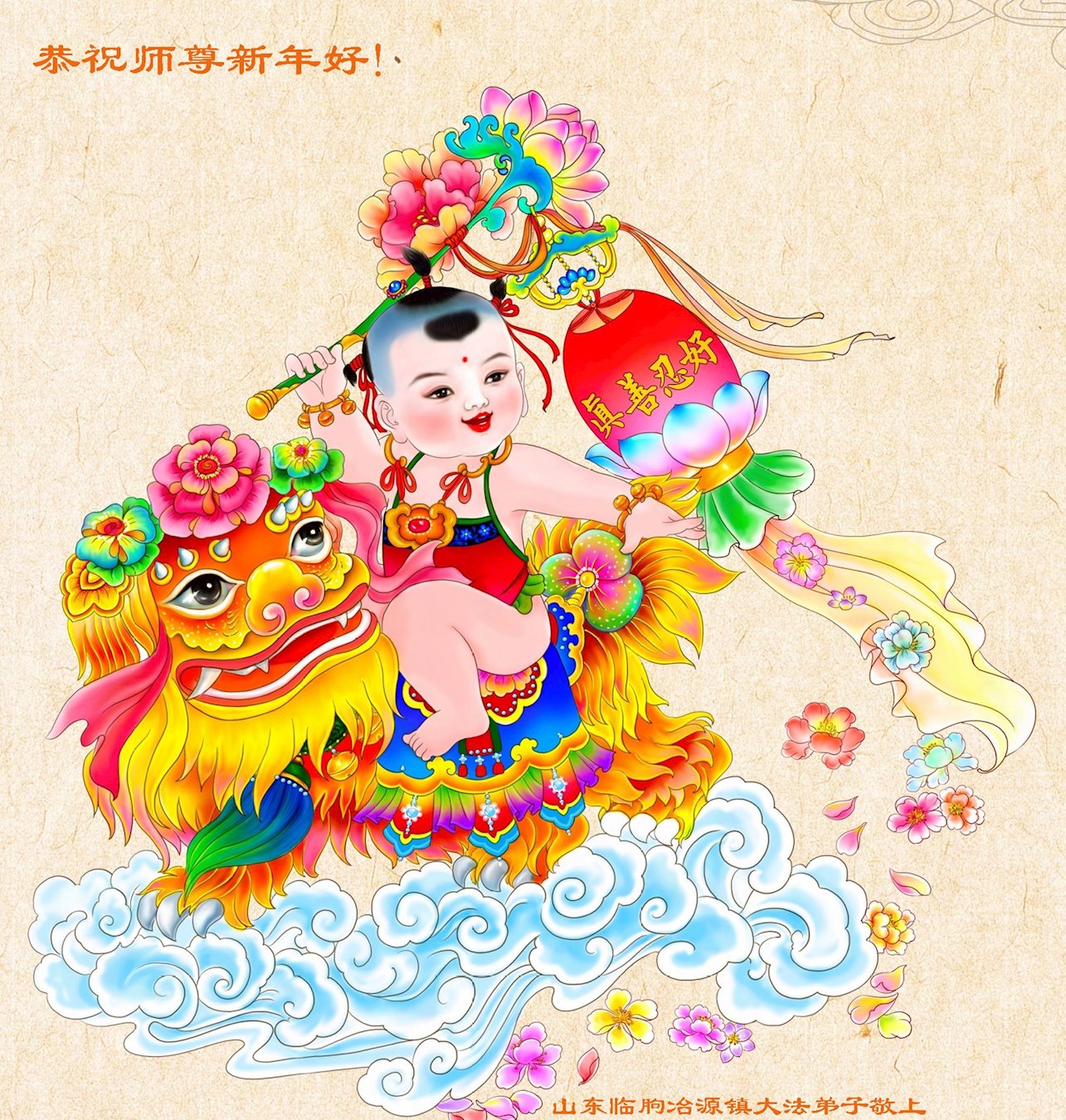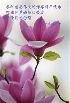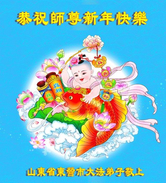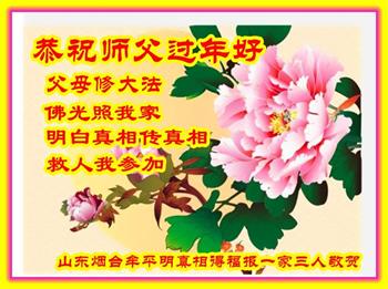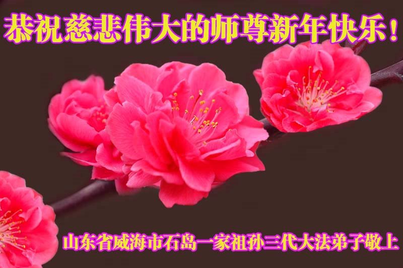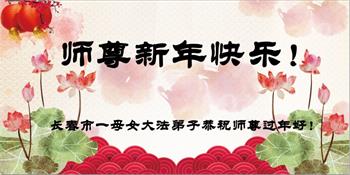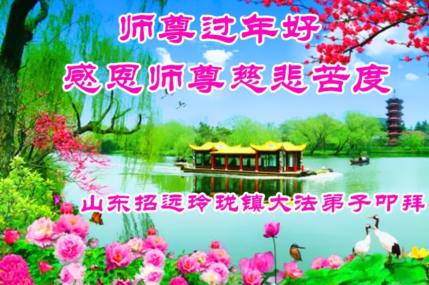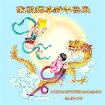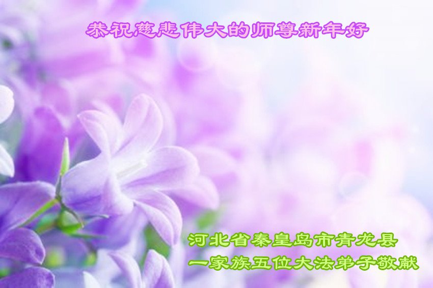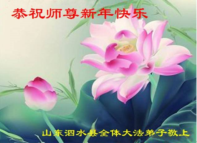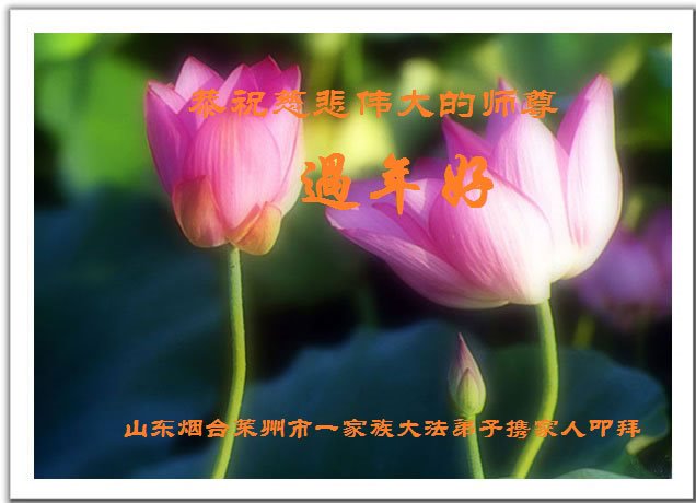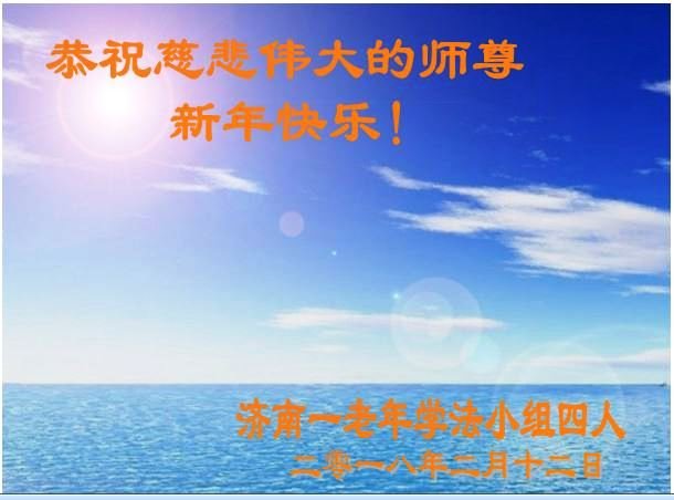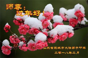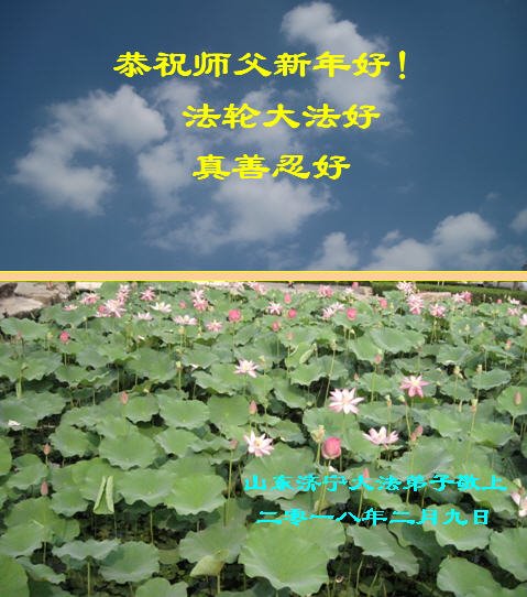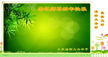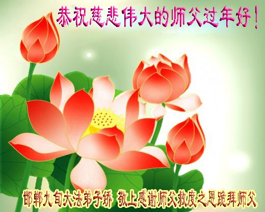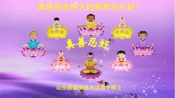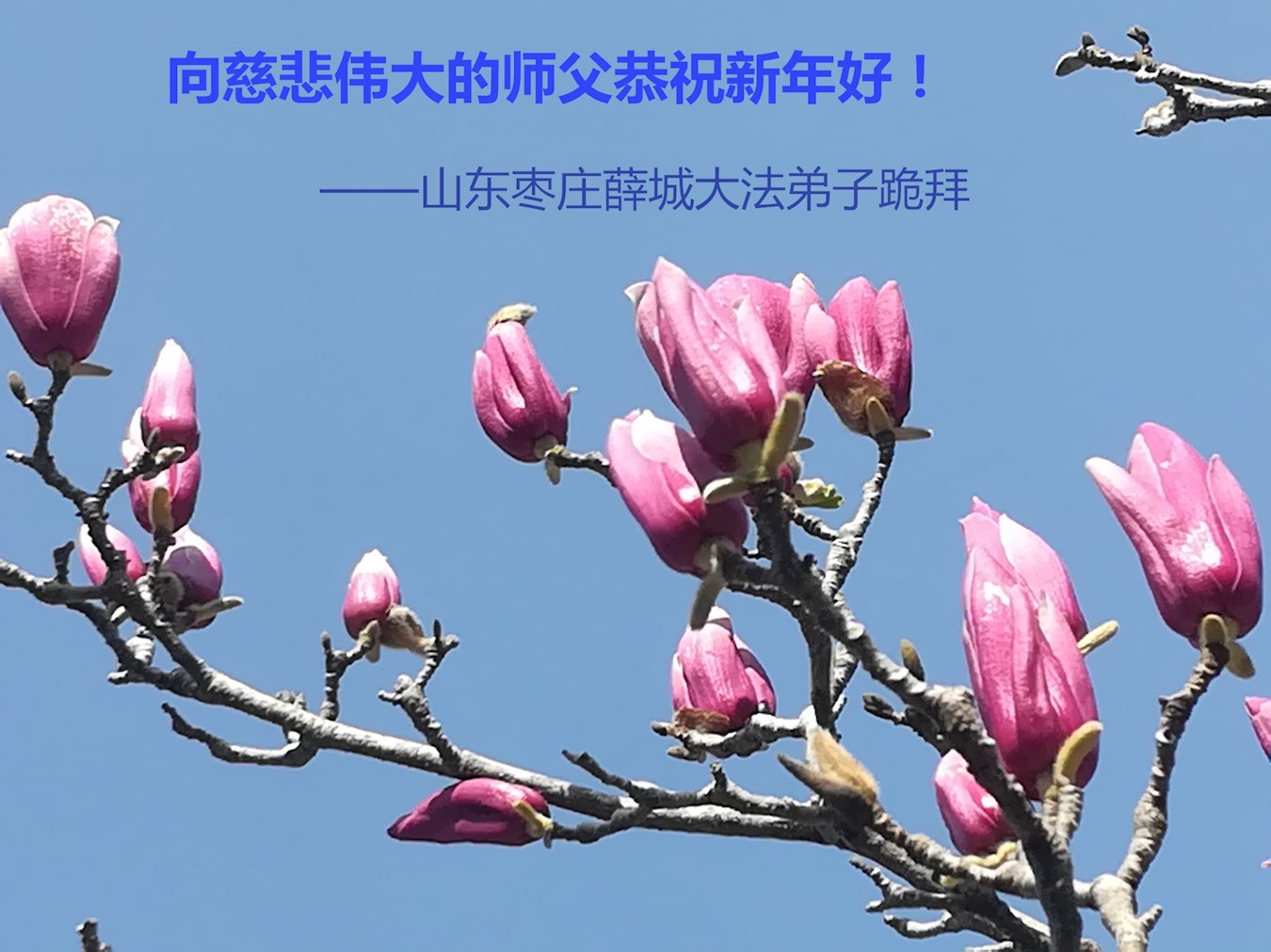 慈悲伟大的师父好!在这天地更新、万物复苏的时候,我们青岛东部的一资料点的全体老少大法弟子及家人给您拜年!恭祝师父新年快乐!借此,我们把满怀对慈悲伟大的师父的思念和感恩之心凝成一句话:学好法,修好心,不懈怠,多救人,路走正,报师恩,证实法!