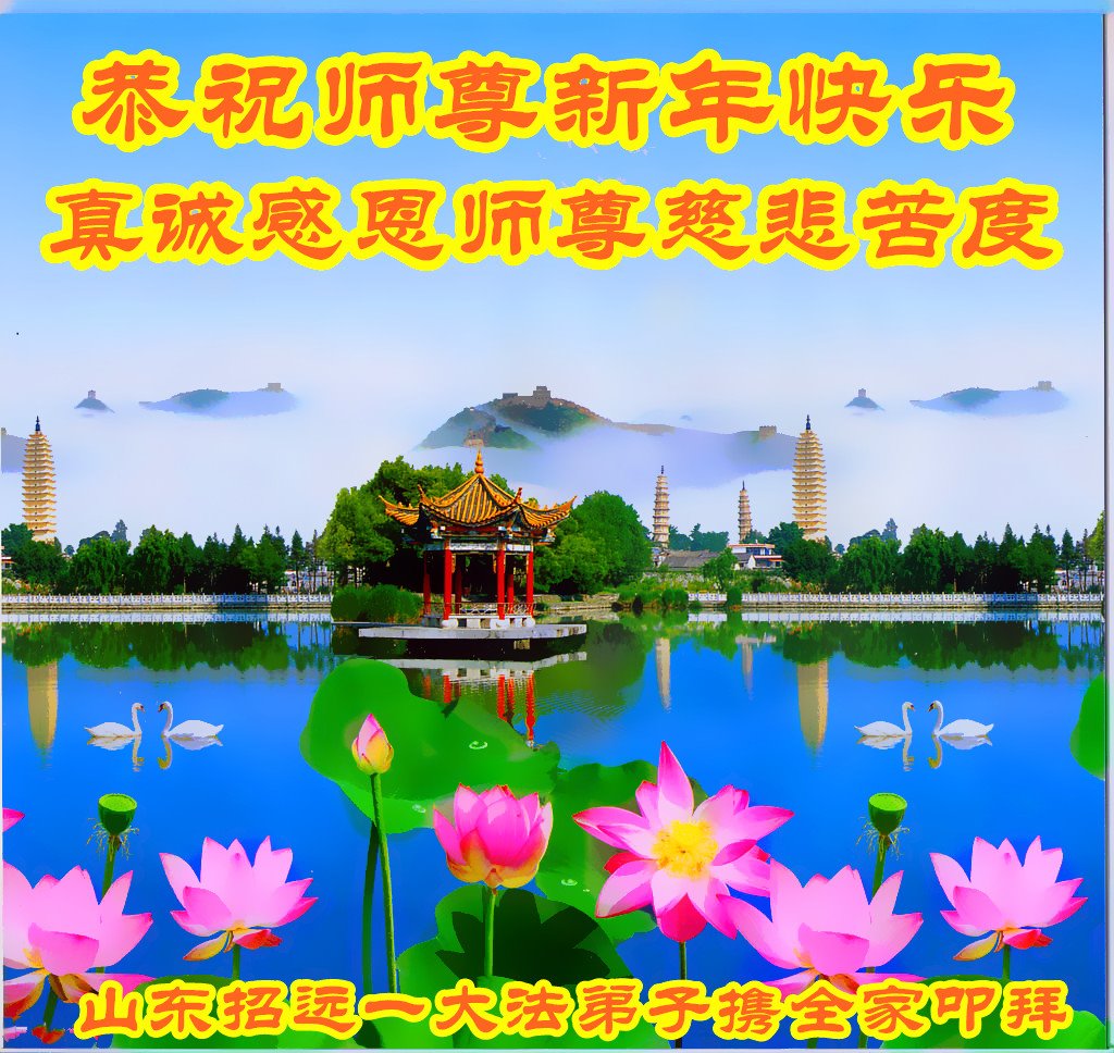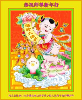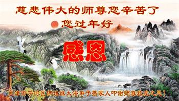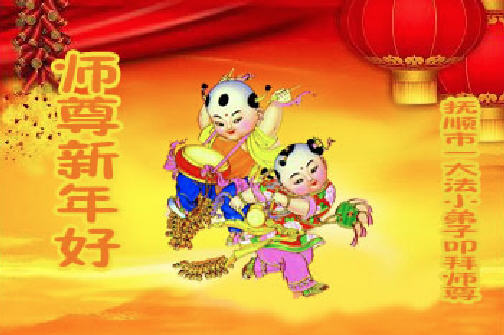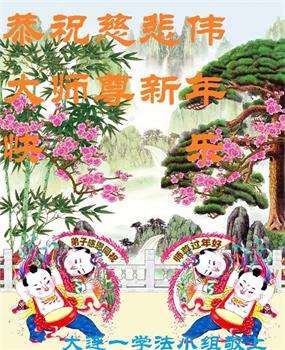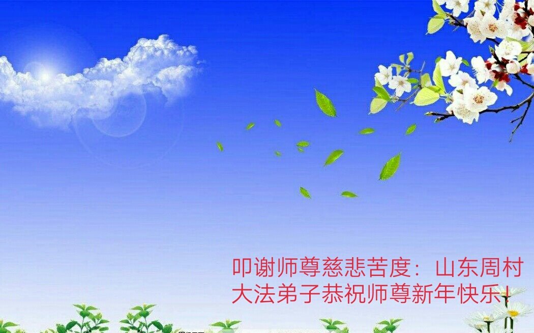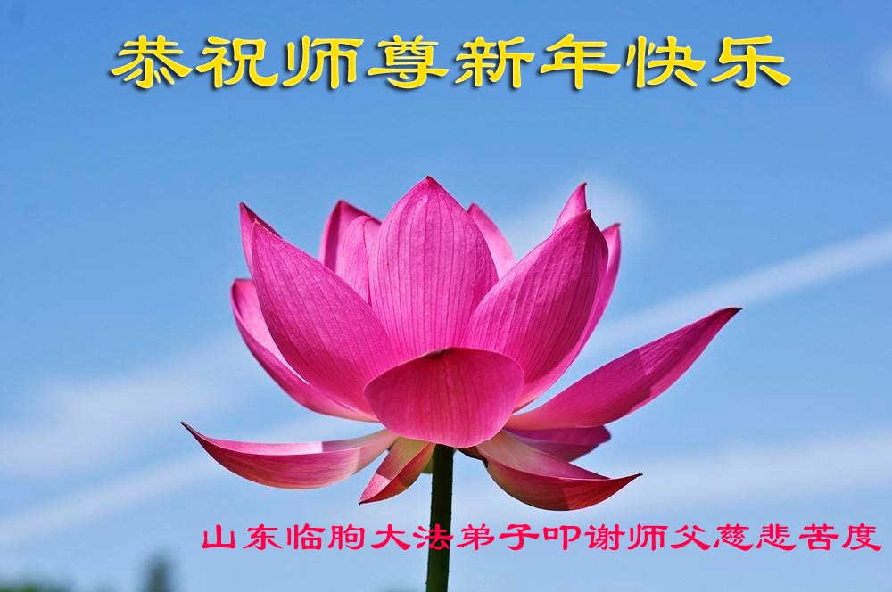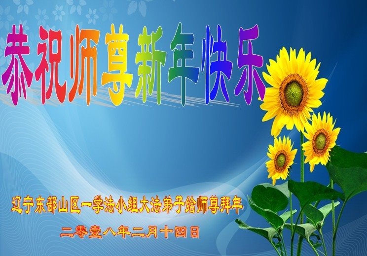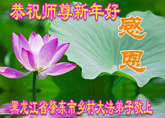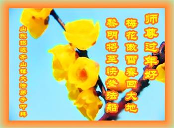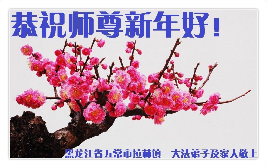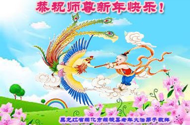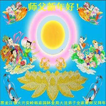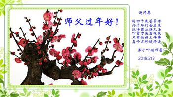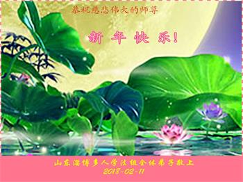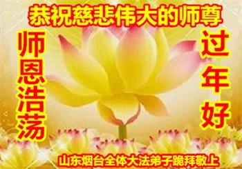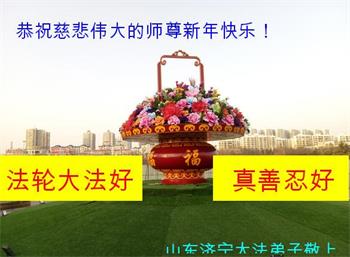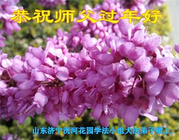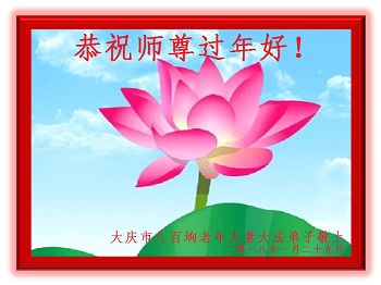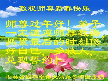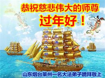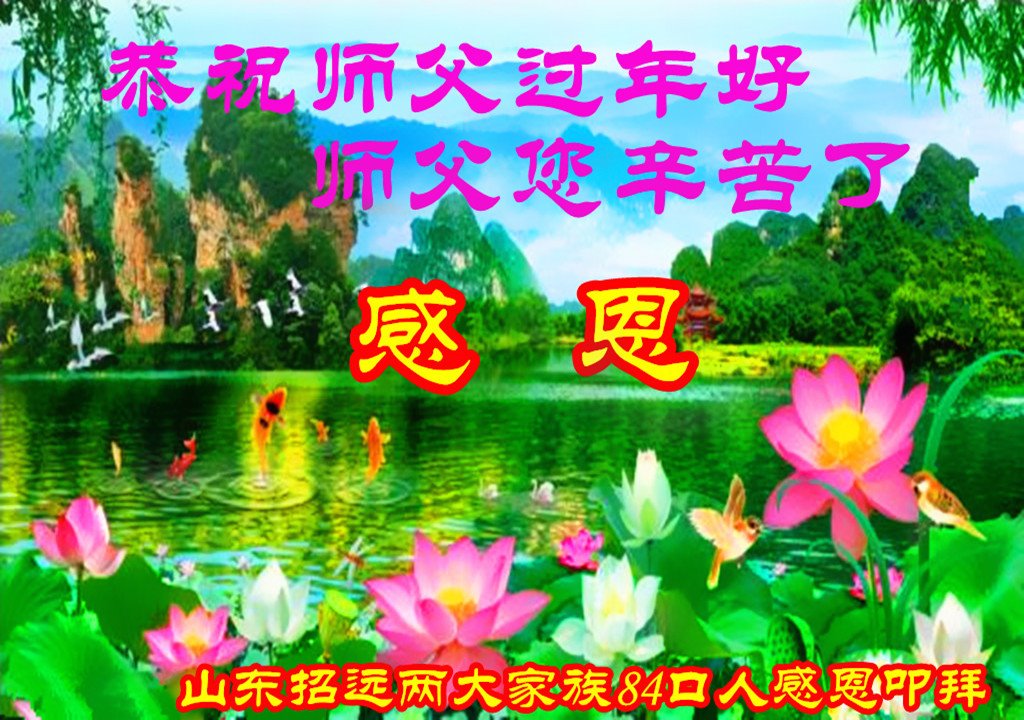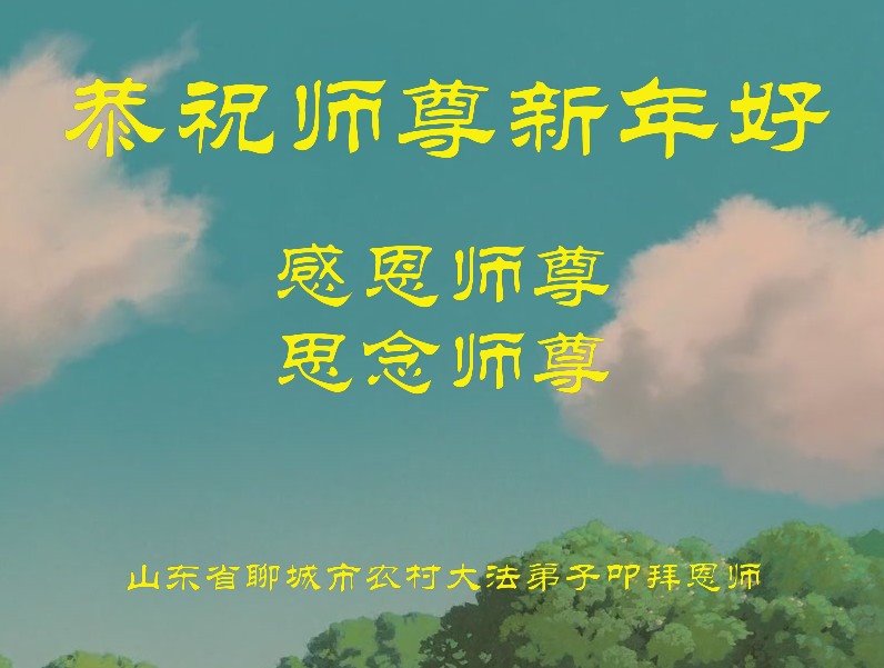 慈悲伟大的师父好!在这天地更新、万物复苏的时候,我们青岛东部的一资料点的全体老少大法弟子及家人给您拜年!恭祝师父新年快乐!借此,我们把满怀对慈悲伟大的师父的思念和感恩之心凝成一句话:学好法,修好心,不懈怠,多救人,路走正,报师恩,证实法!