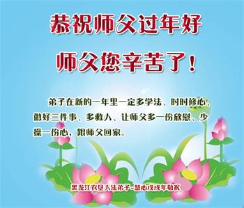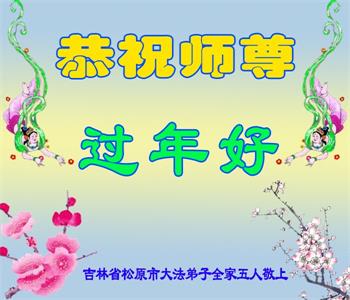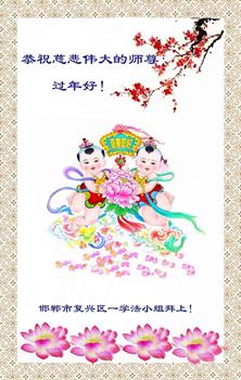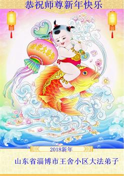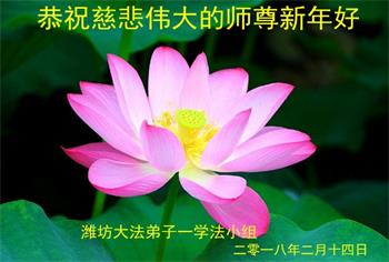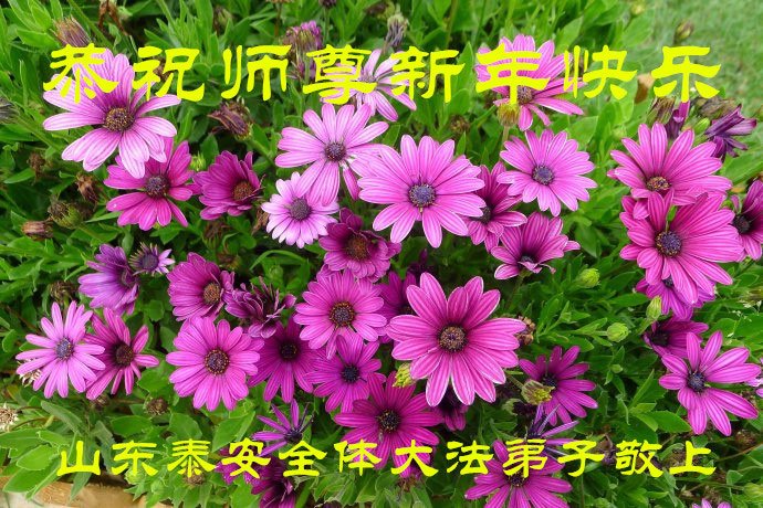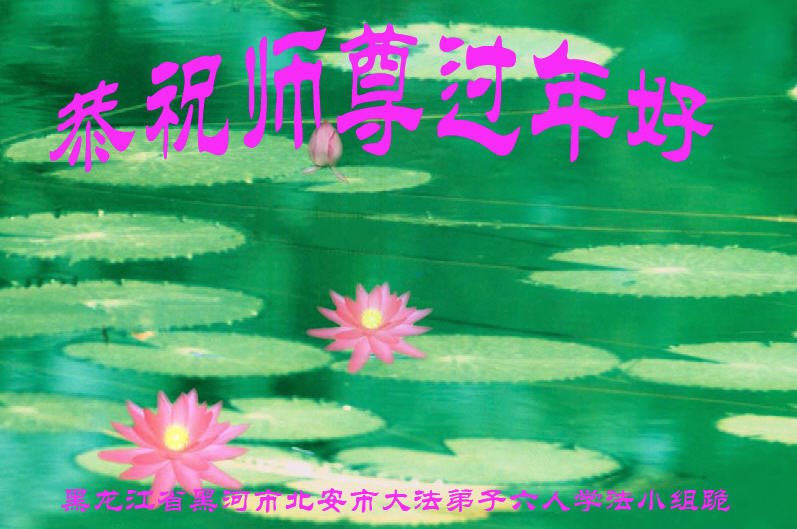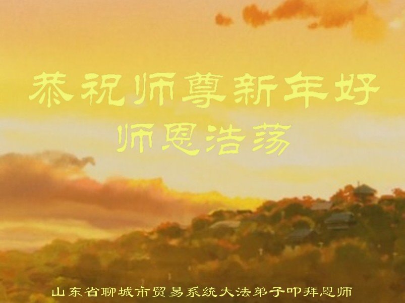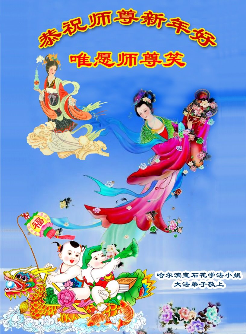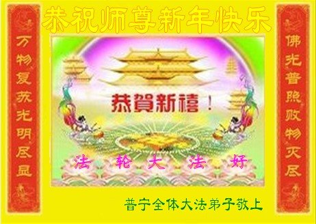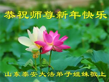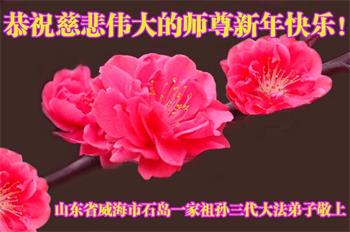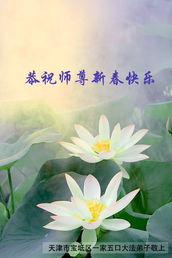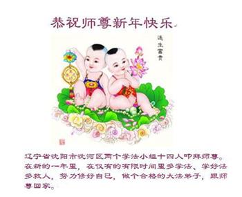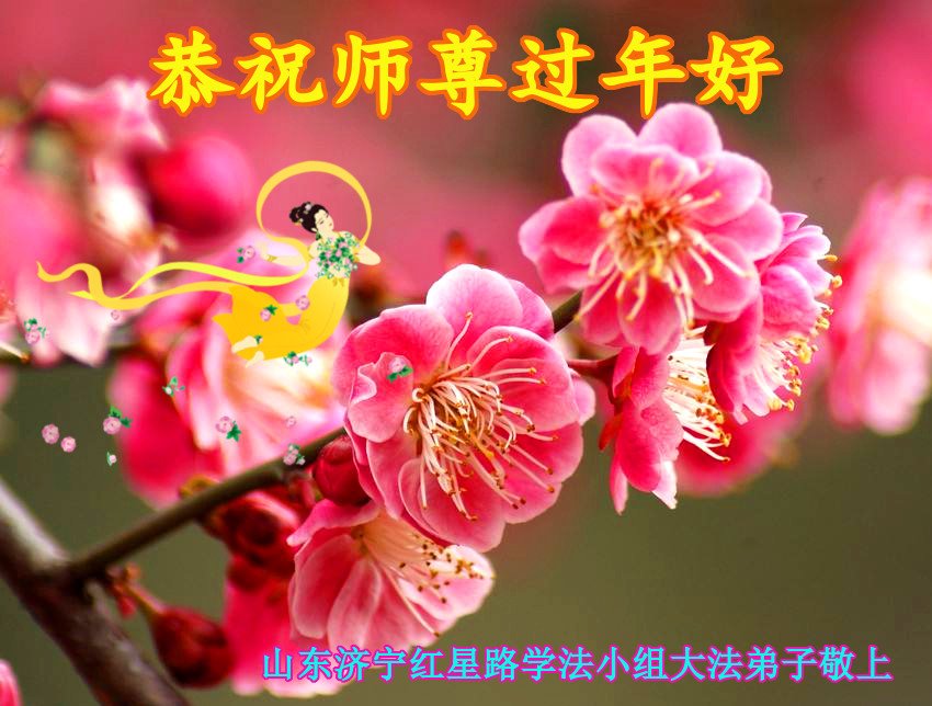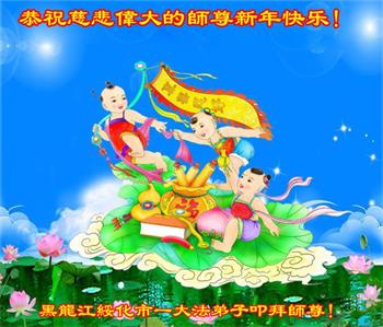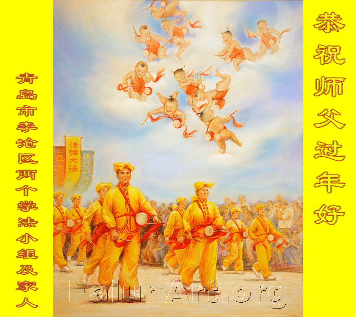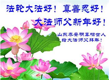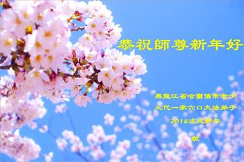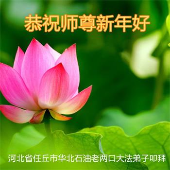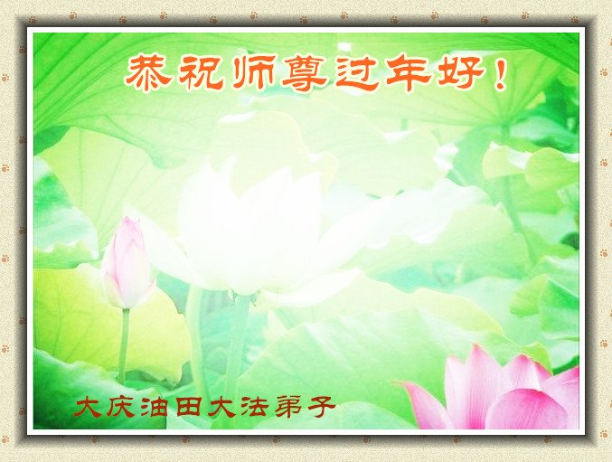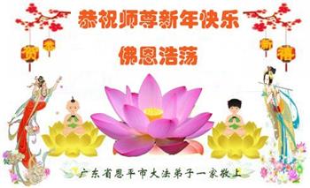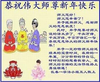 慈悲伟大的师父好!在这天地更新、万物复苏的时候,我们青岛东部的一资料点的全体老少大法弟子及家人给您拜年!恭祝师父新年快乐!借此,我们把满怀对慈悲伟大的师父的思念和感恩之心凝成一句话:学好法,修好心,不懈怠,多救人,路走正,报师恩,证实法!