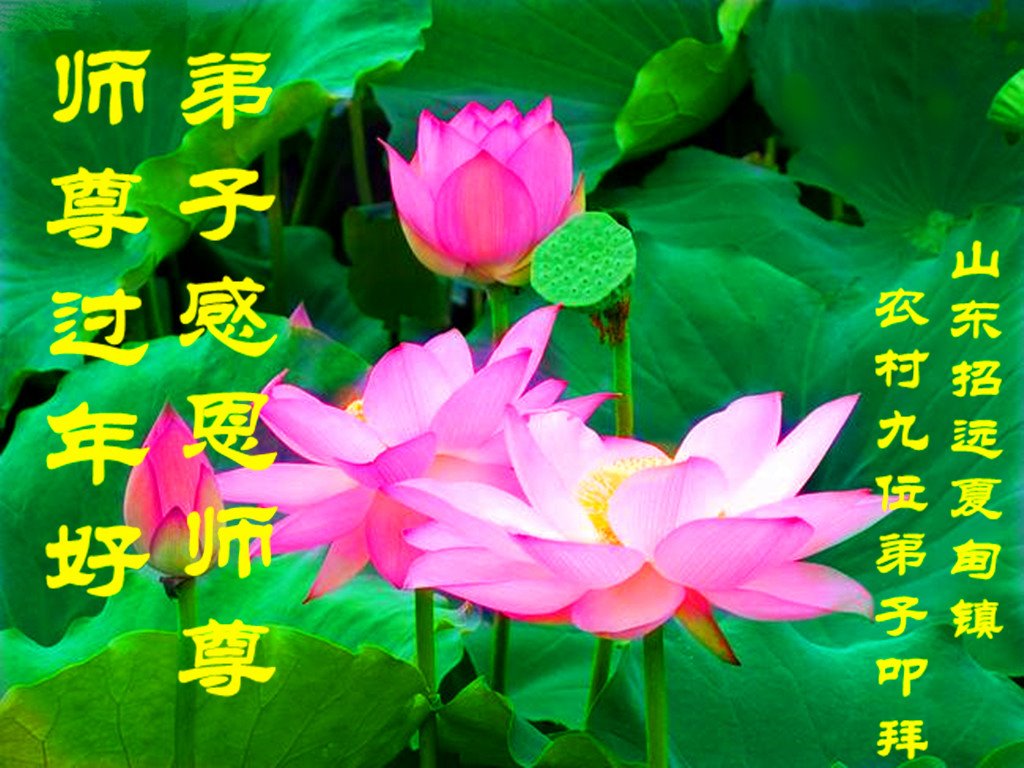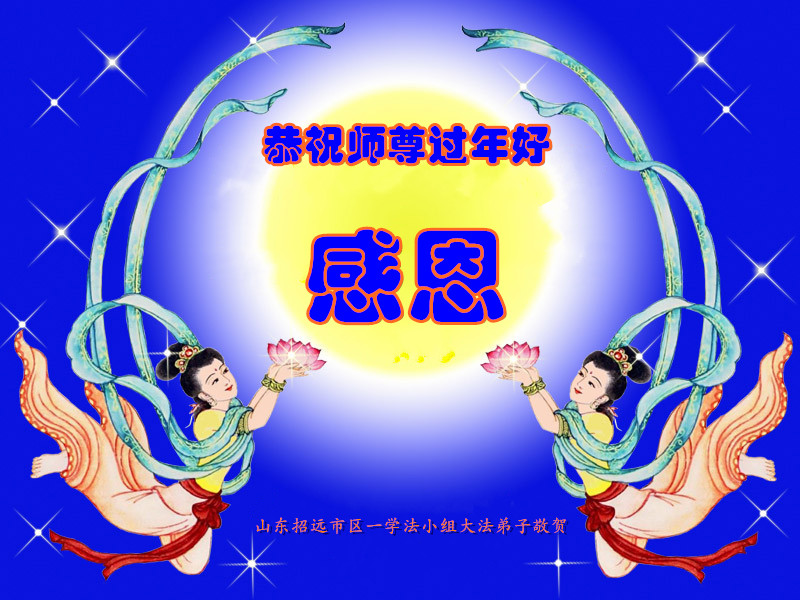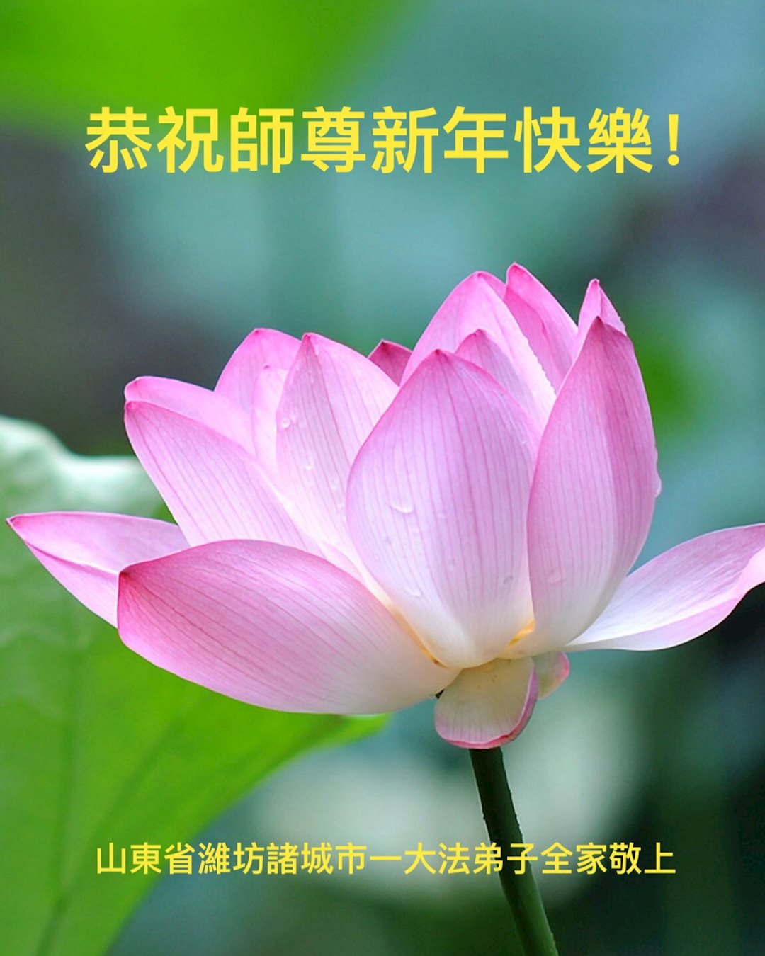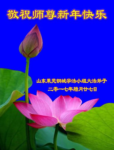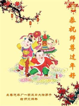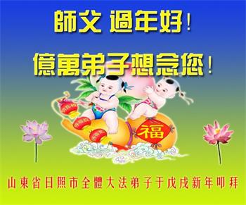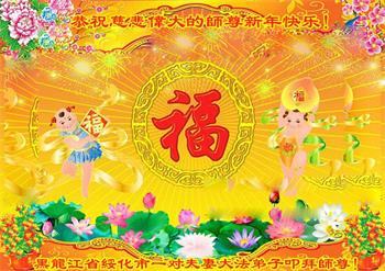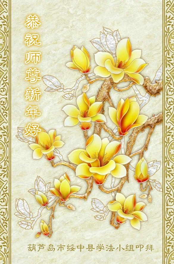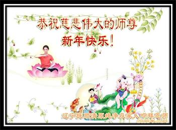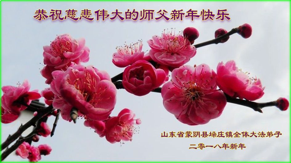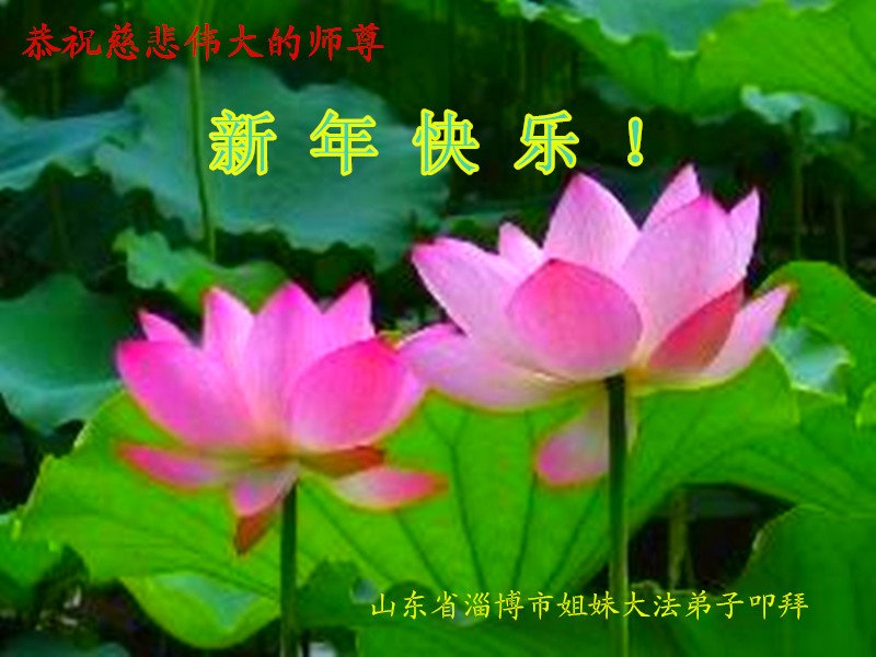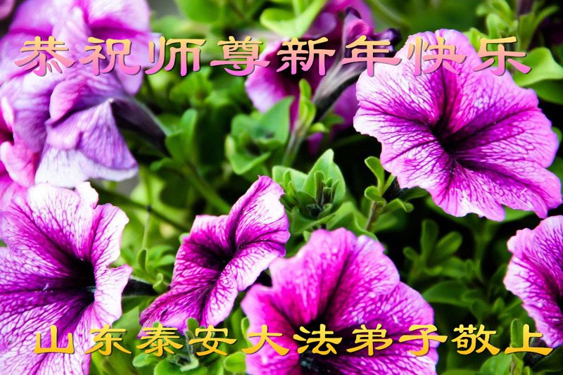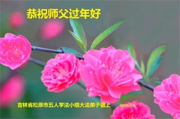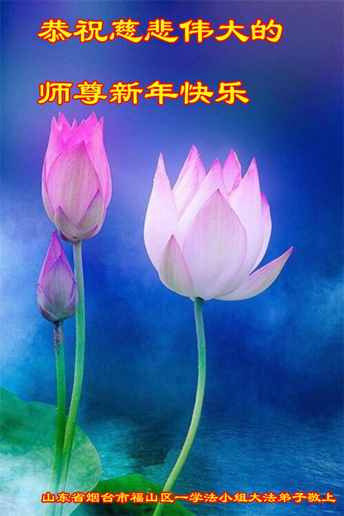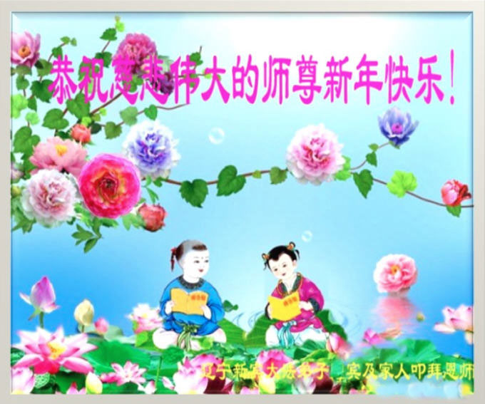 慈悲伟大的师父好!在这天地更新、万物复苏的时候,我们青岛东部的一资料点的全体老少大法弟子及家人给您拜年!恭祝师父新年快乐!借此,我们把满怀对慈悲伟大的师父的思念和感恩之心凝成一句话:学好法,修好心,不懈怠,多救人,路走正,报师恩,证实法!