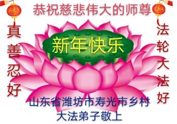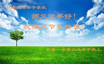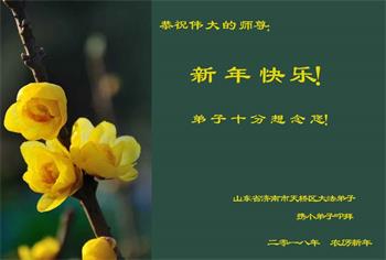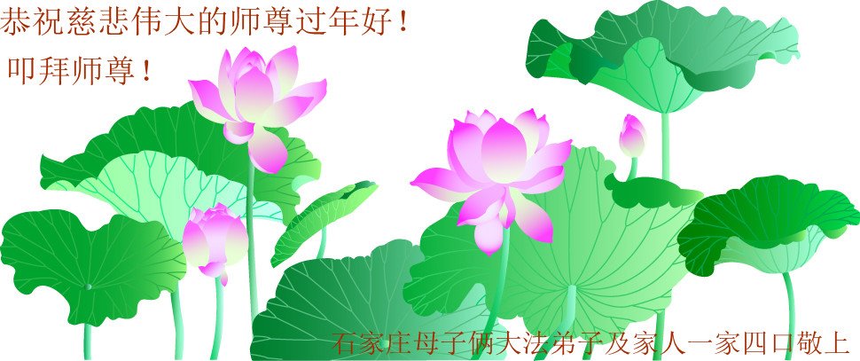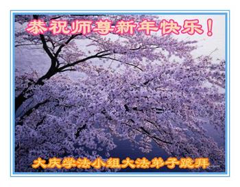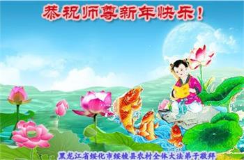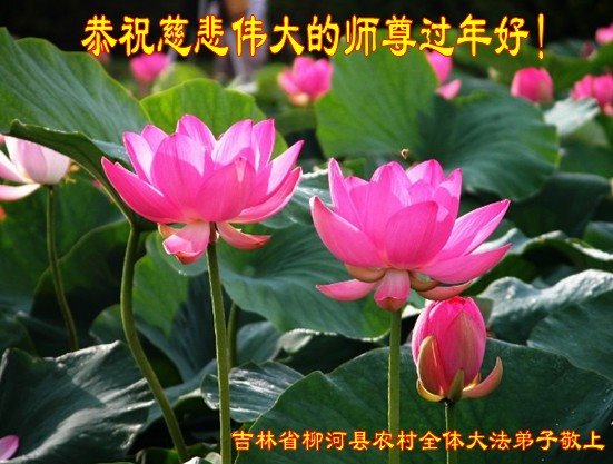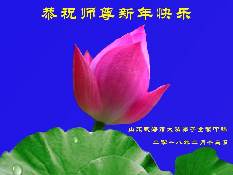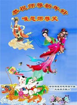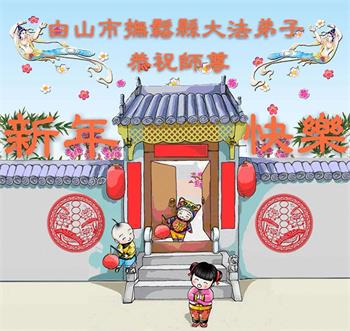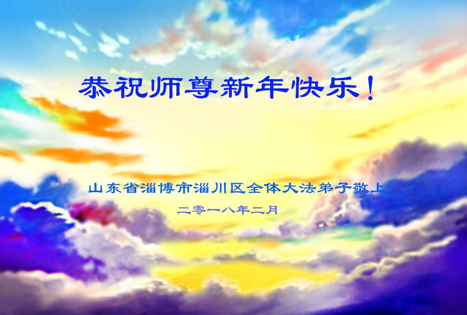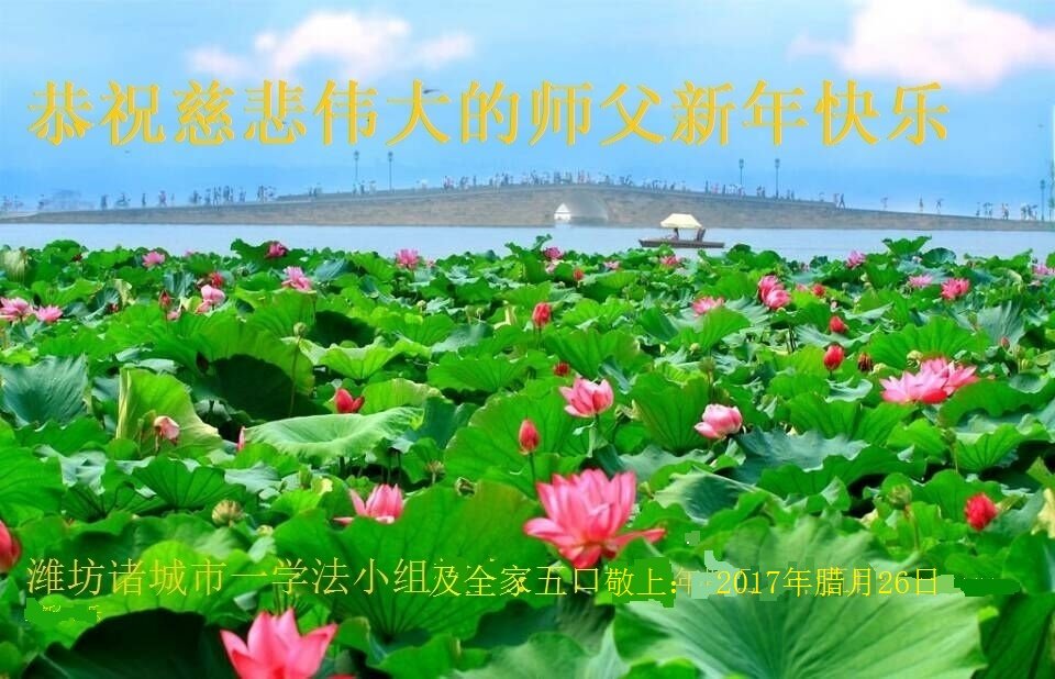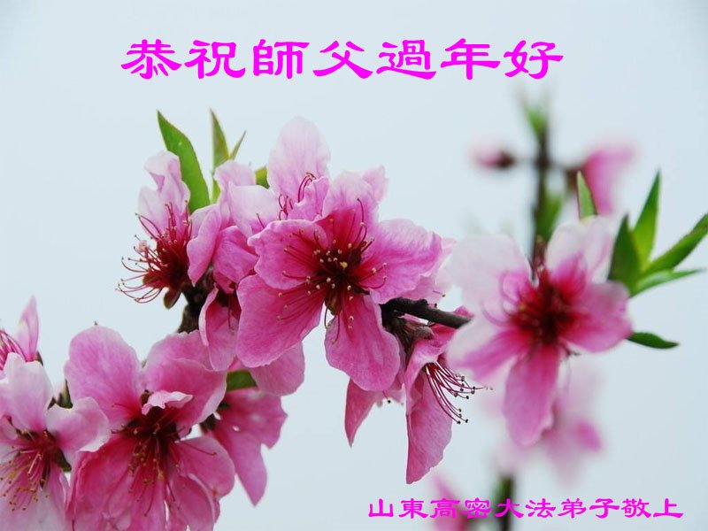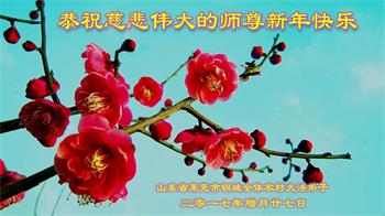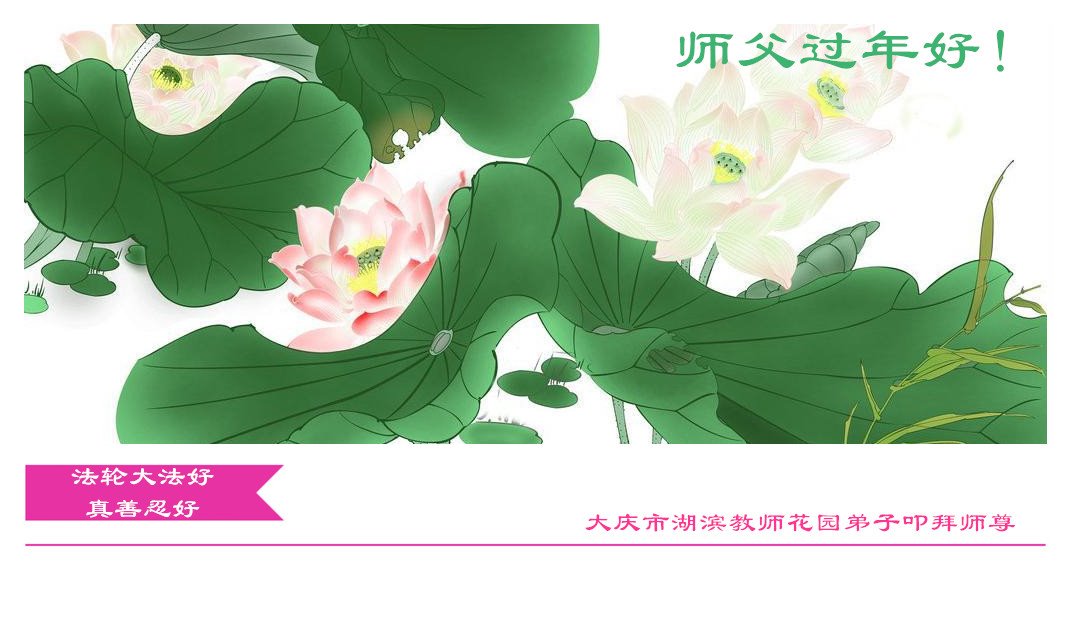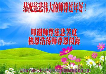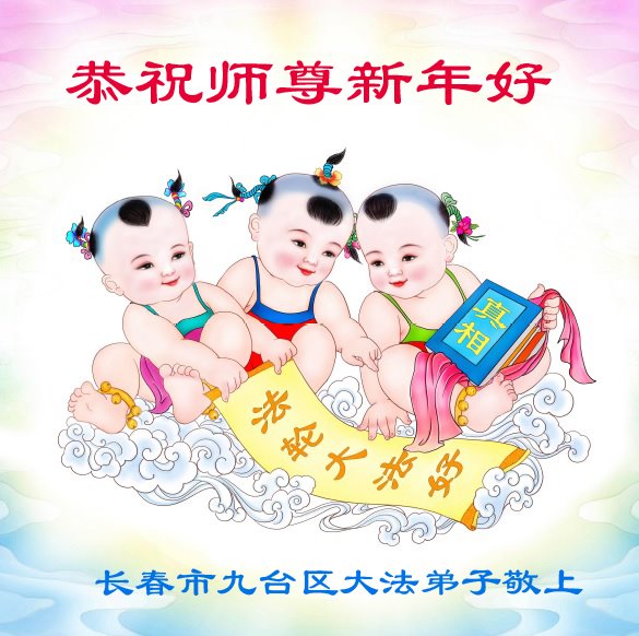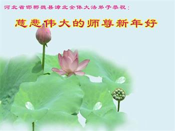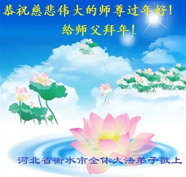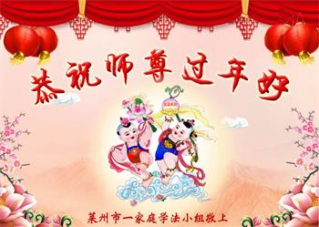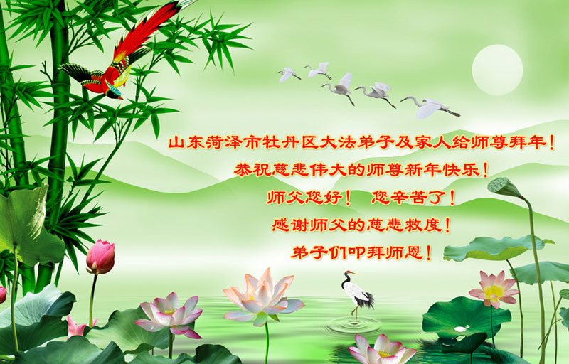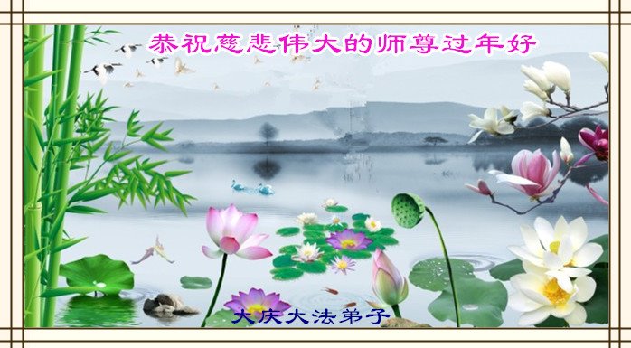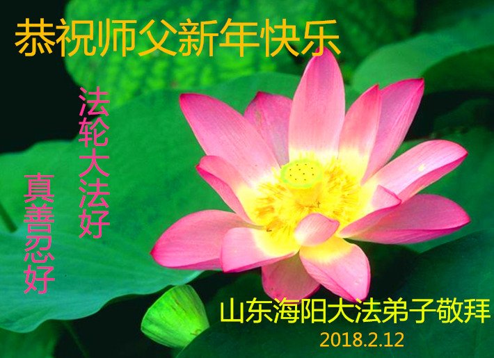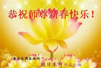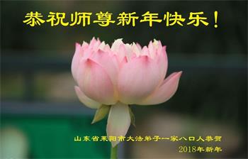 慈悲伟大的师父好!在这天地更新、万物复苏的时候,我们青岛东部的一资料点的全体老少大法弟子及家人给您拜年!恭祝师父新年快乐!借此,我们把满怀对慈悲伟大的师父的思念和感恩之心凝成一句话:学好法,修好心,不懈怠,多救人,路走正,报师恩,证实法!