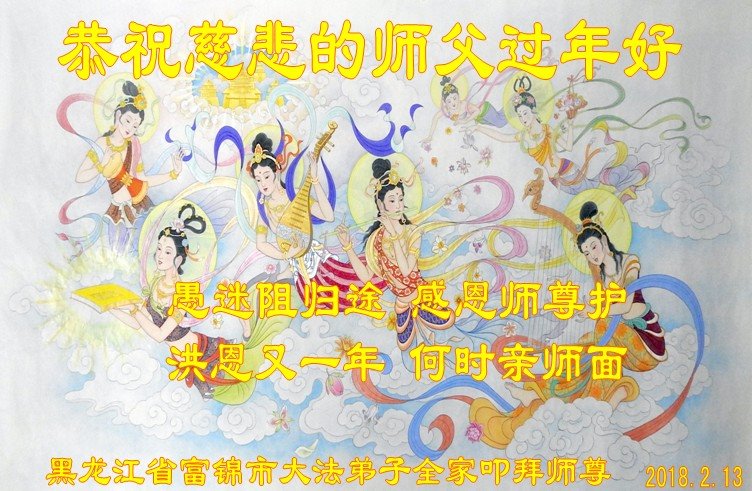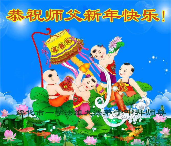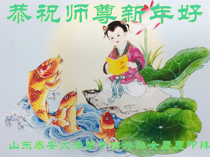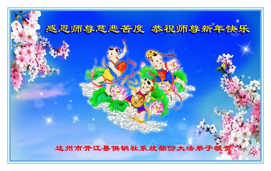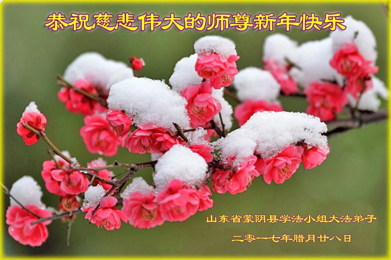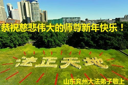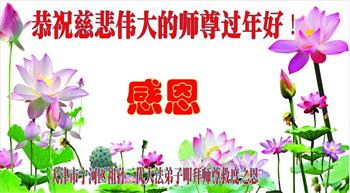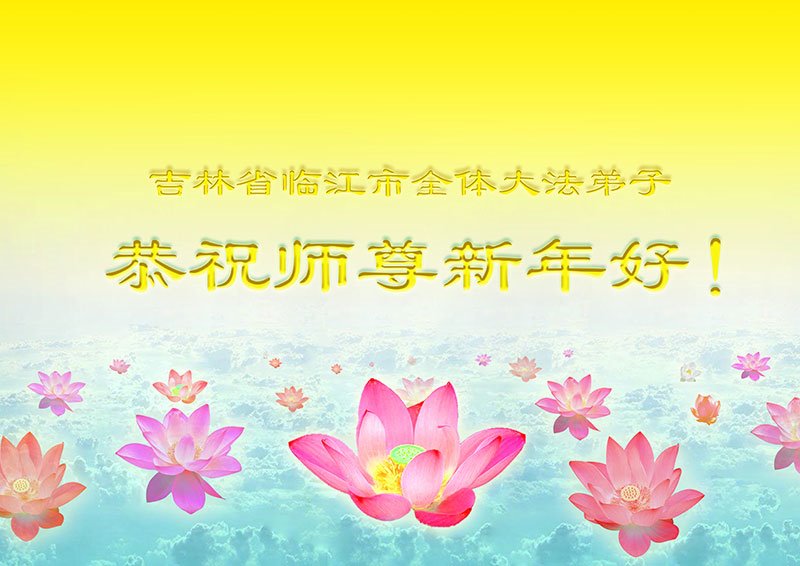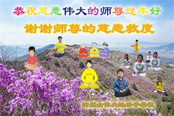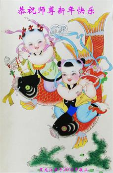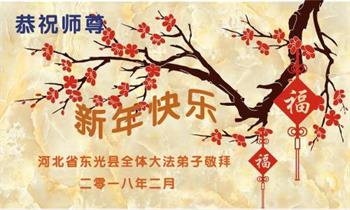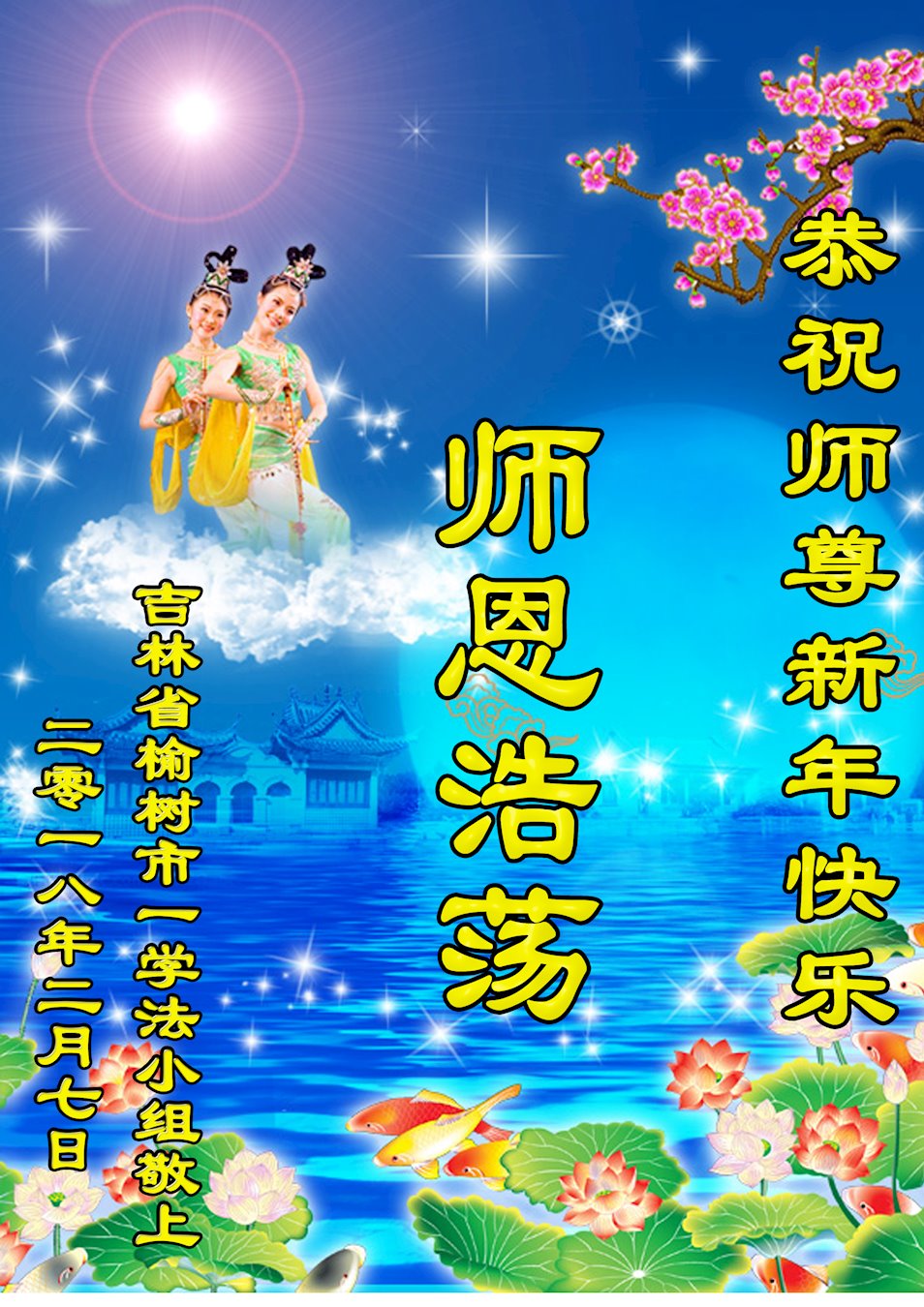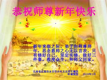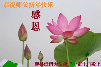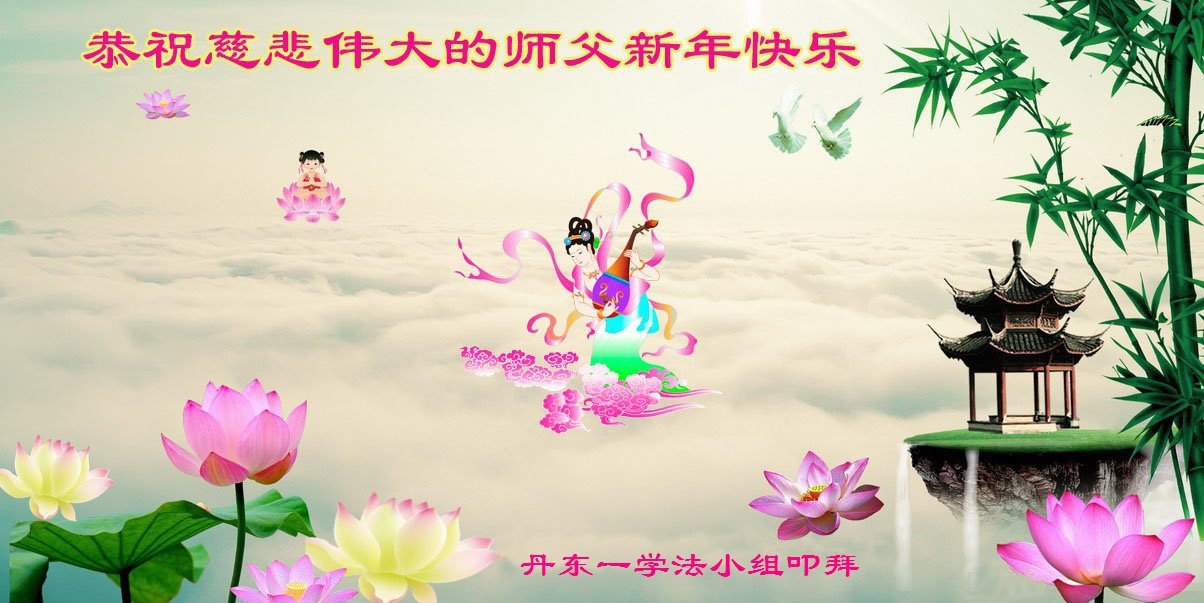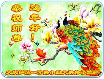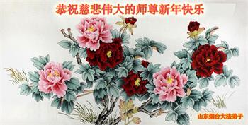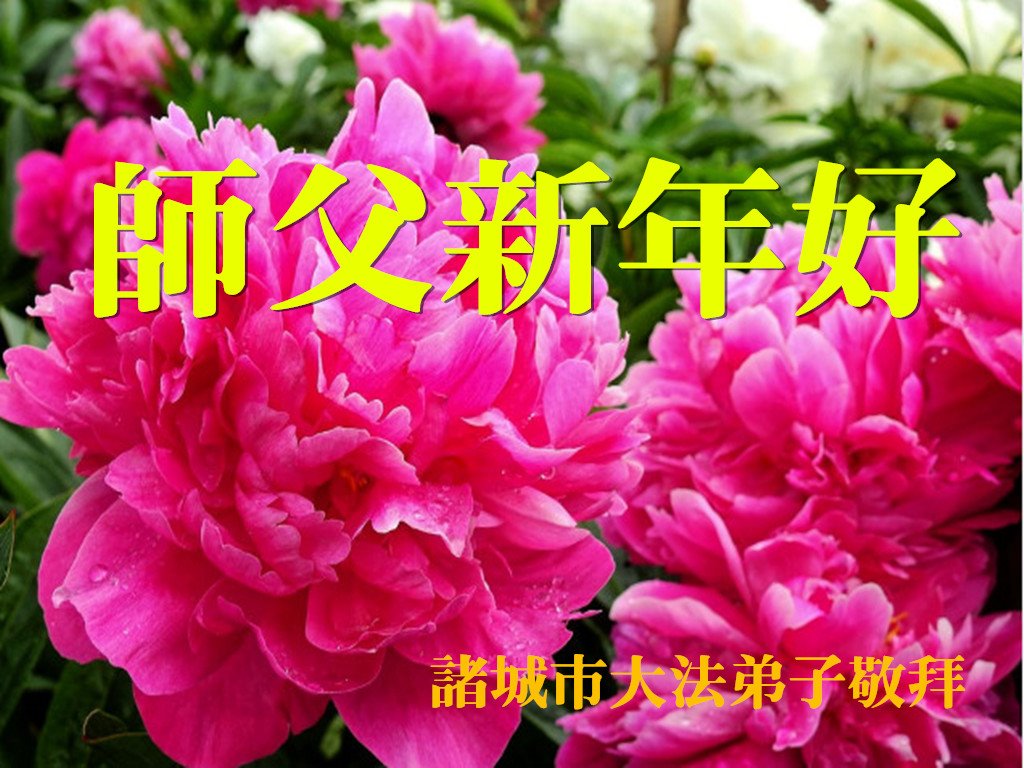 慈悲伟大的师父好!在这天地更新、万物复苏的时候,我们青岛东部的一资料点的全体老少大法弟子及家人给您拜年!恭祝师父新年快乐!借此,我们把满怀对慈悲伟大的师父的思念和感恩之心凝成一句话:学好法,修好心,不懈怠,多救人,路走正,报师恩,证实法!