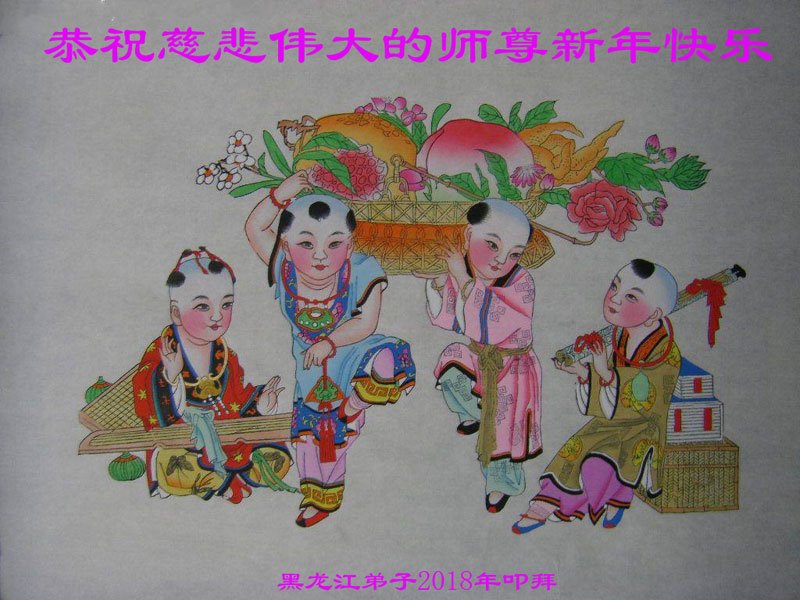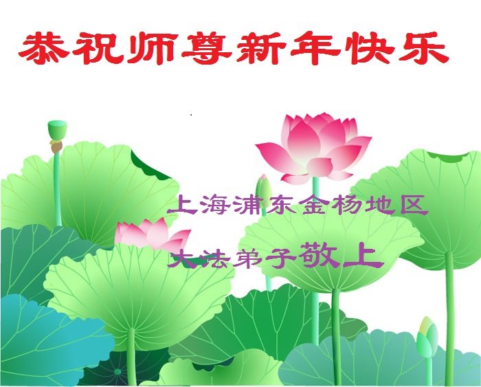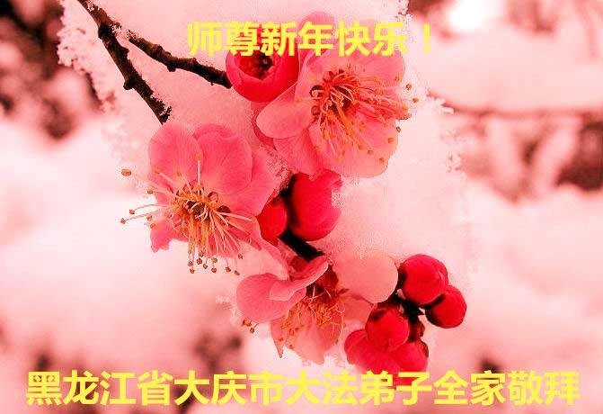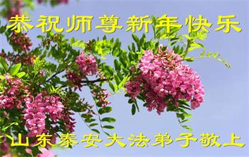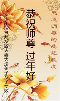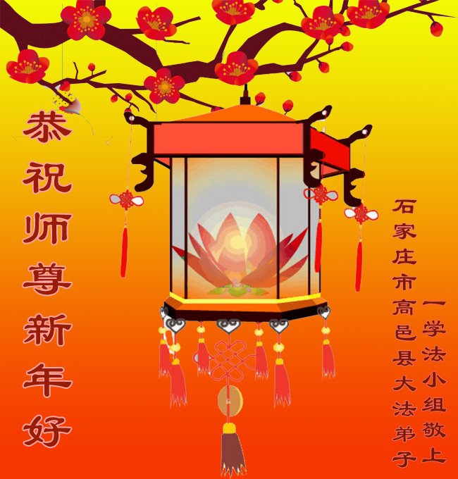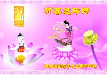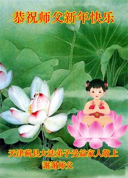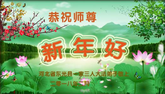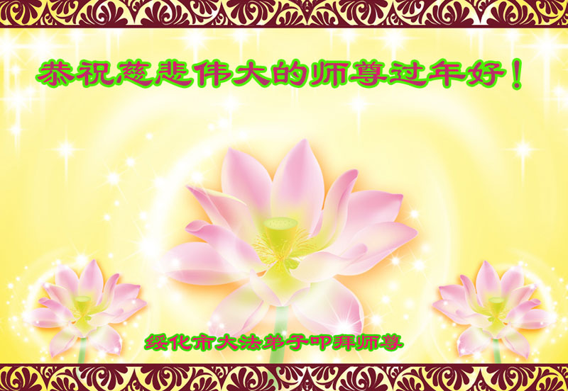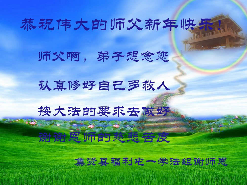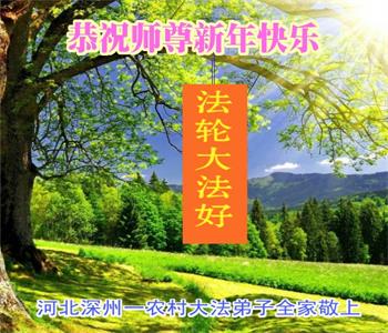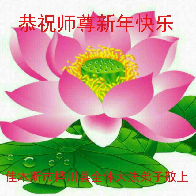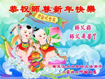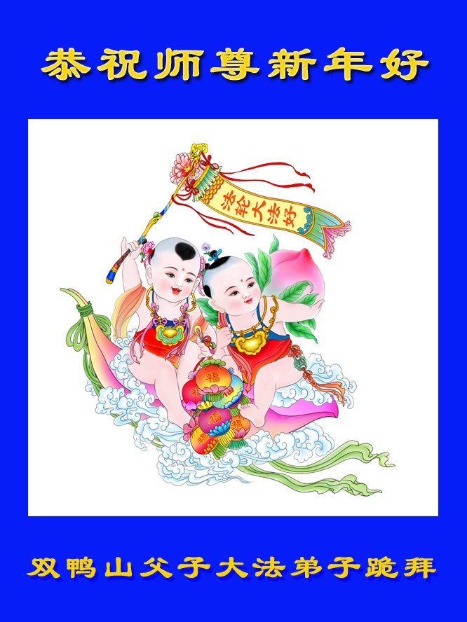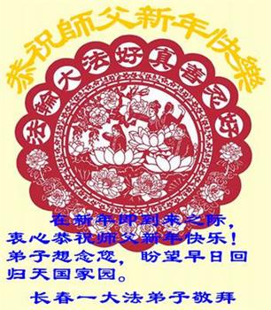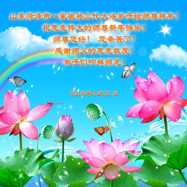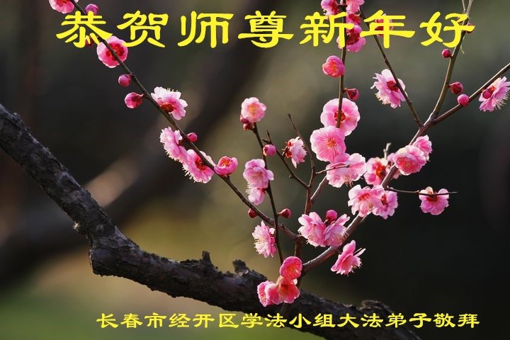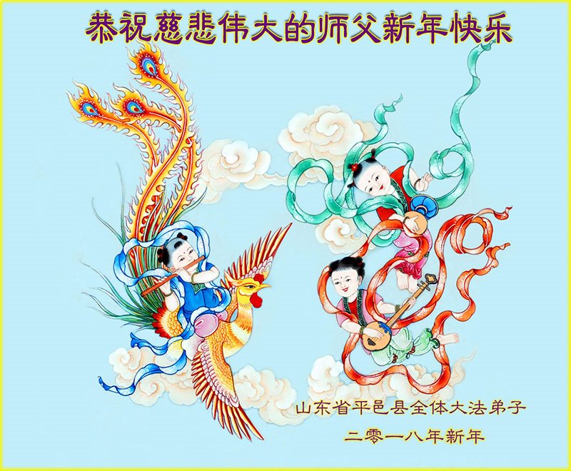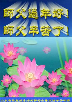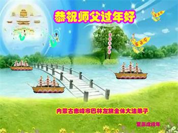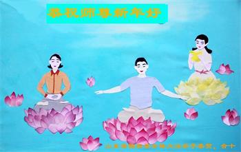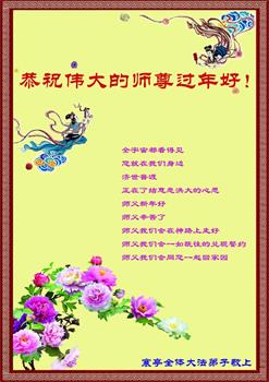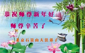慈悲伟大的师父好!在这天地更新、万物复苏的时候,我们青岛东部的一资料点的全体老少大法弟子及家人给您拜年!恭祝师父新年快乐!借此,我们把满怀对慈悲伟大的师父的思念和感恩之心凝成一句话:学好法,修好心,不懈怠,多救人,路走正,报师恩,证实法!